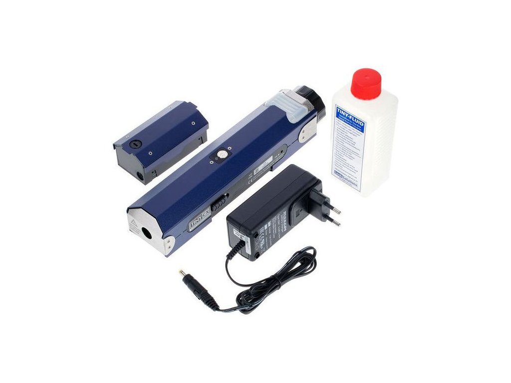 TINY CX, następca TINY C07 z wymiennym akumulatorem, to praktyczna, łatwa w obsłudze wytwornica mgły z krótkim czasem nagrzewania < 1 sek. Dostarczana jest w walizce, waży zaledwie 630 g i ma kompaktowe wymiary 25 x 5,3 x 5,5 cm. Może być używany w teatrze, filmie, telewizji, musicalu, do zdjęć, efektów specjalnych lub różnych testów (przepływ powietrza, szczelność). Można nim sterować jedną ręką, zdalnie bezprzewodowo lub kablem, opcjonalnie za pomocą konwertera DMX. Sterowanie mikroprocesorowe, czas nagrzewania < 1 sek., pobór mocy 70 W, bateria 11.1 V, minimalne zużycie (2,3 ml/min. ciągłej mocy; przy użyciu oryginalnego płynu) wyprodukowano w Niemczech.