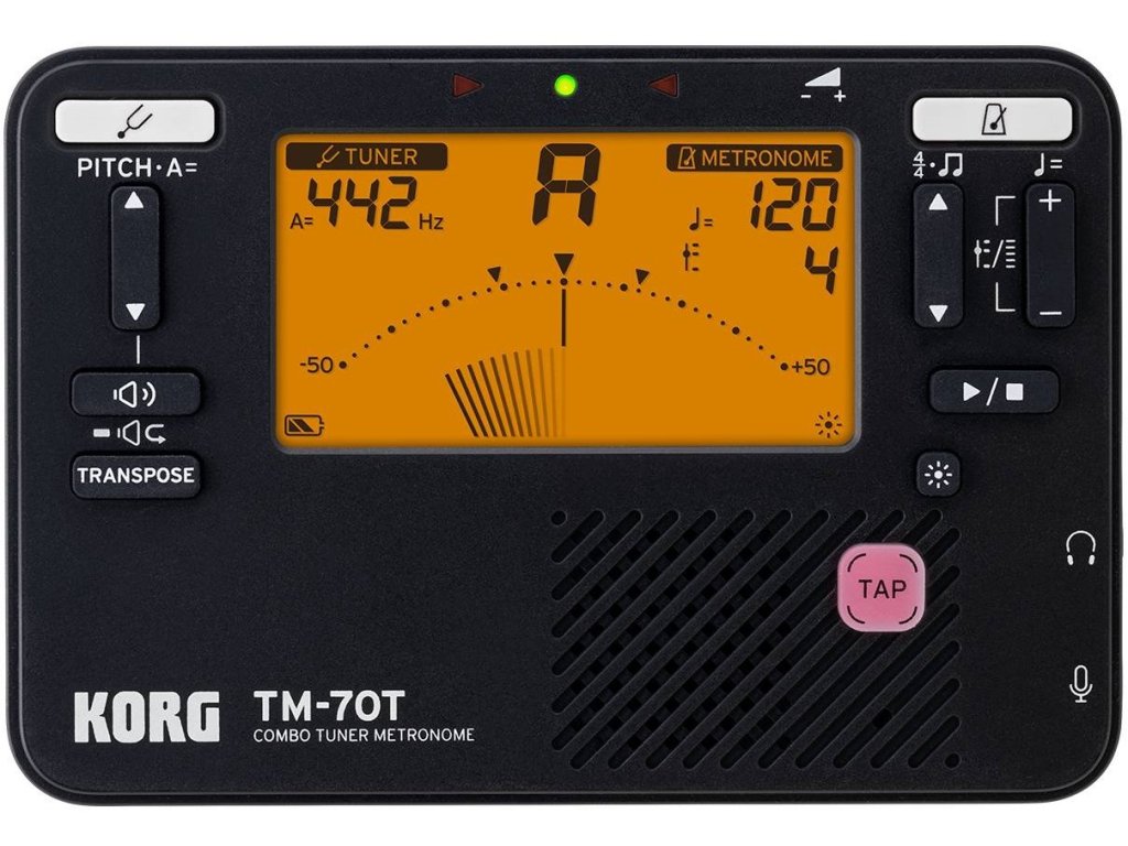 Seria TM, która łączy tuner i metronom w jednym urządzeniu, to doskonały tuner/metronom, który zawiera to, co najlepsze w wieloletniej technologii firmy Korg. Model TM-70 jest mniejszy niż jego poprzednik TM-60, ale ma większy wyświetlacz pokazujący nazwy nut i skale. Wyższa rozdzielczość wyświetlacza LCD ułatwia również widoczność pod różnymi kątami, co sprzyja bardzo dokładnemu strojeniu bez stresu.