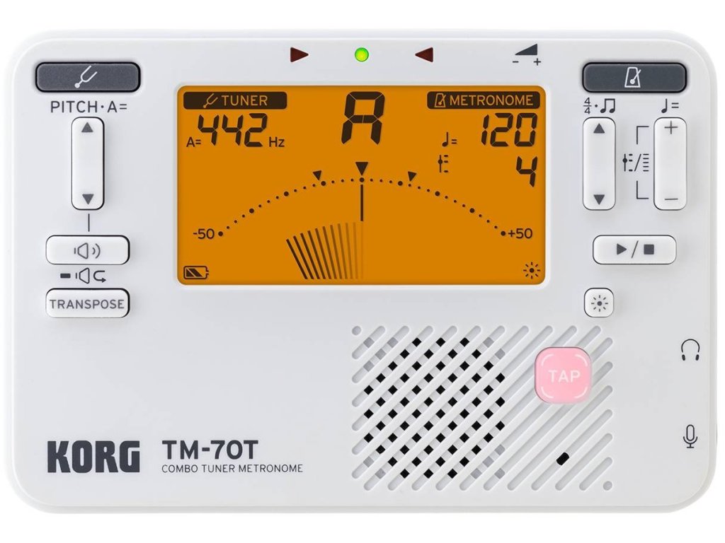 Seria TM, która łączy tuner i metronom w jednym urządzeniu, to doskonały tuner/metronom, który zawiera to, co najlepsze w wieloletniej technologii firmy Korg. Model TM-70 jest mniejszy niż jego poprzednik TM-60, ale ma większy wyświetlacz pokazujący nazwy nut i skale. Wyższa rozdzielczość wyświetlacza LCD ułatwia również widoczność pod różnymi kątami, co sprzyja bardzo dokładnemu strojeniu bez stresu.