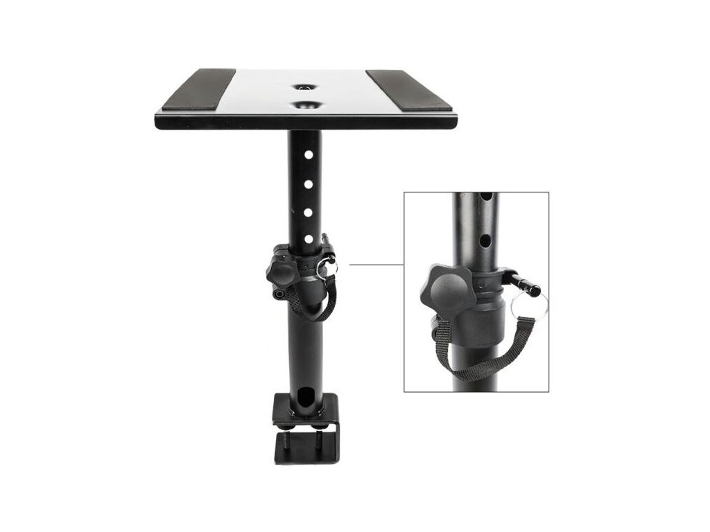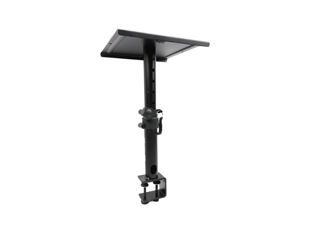 DNA TM1 to biurkowy statyw pod monitor przeznaczony do domowych i profesjonalnych studiów nagraniowych. Wytrzymała stal malowana proszkowo i maksymalna nośność do 15 kg sprawiają, że jest to solidny i niezawodny statyw. Dwie antypoślizgowe taśmy zapobiegają zarysowaniu monitora, tłumią wibracje rezonansowe i zapobiegają jego przesuwaniu się podczas pracy. Kołek zabezpieczający i pięciostopniowa regulacja wysokości w zakresie 25-38 cm umożliwiają dopasowanie statywu.