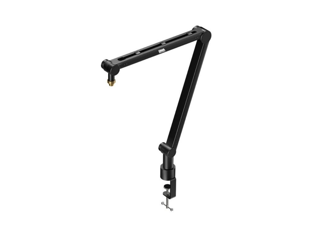 DNA TMS PRO to profesjonalny, biurkowy statyw mikrofonowy, który zapewnia stabilne i solidne wsparcie dla mikrofonów o maksymalnej wadze do 2 kg. Dzięki głównemu prętowi o długości 50 cm i szerokości 4 cm, statyw ten idealnie nadaje się do utrzymywania nawet cięższych mikrofonów bez obaw o ich stabilność. Maksymalna grubość blatu (7 cm), do którego można przymocować statyw, umożliwia jego użycie niemal w każdych warunkach i w każdym miejscu pracy. Świetnie sprawdzi się w studiach nagraniowych i radiowych, a także do pracy zdalnej w domowym biurze.