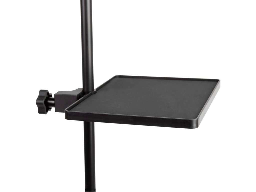 Półka jest wykonana z wytrzymałego materiału ABS + PC i wytrzymuje obciążenie do 3 kg, przy czym sama waży zaledwie 0,3 kg. Dzięki temu idealnie nadaje się również do częstego przenoszenia i użytku mobilnego. Uniwersalny regulowany system mocowania umożliwia łatwe mocowanie do statywów, blatów lub rur o średnicy do 3,5 cm, co zapewnia elastyczność w jej umieszczeniu zgodnie z Twoimi aktualnymi potrzebami.