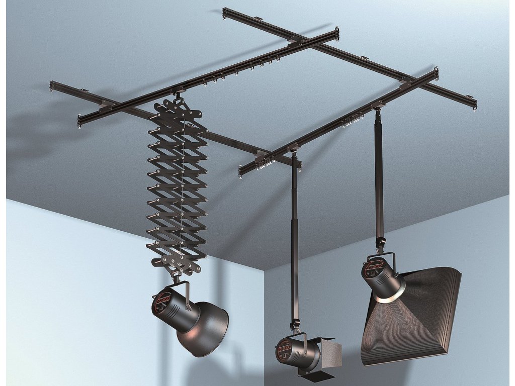 Kompletny zestaw do małych studiów składający się z 2 stałych szyn o długości 3 m, 2 mobilnych szyn o długości 3 m oraz podpór dla 3 źródeł światła (1 górny pantograf i 2 teleskopowe słupki).