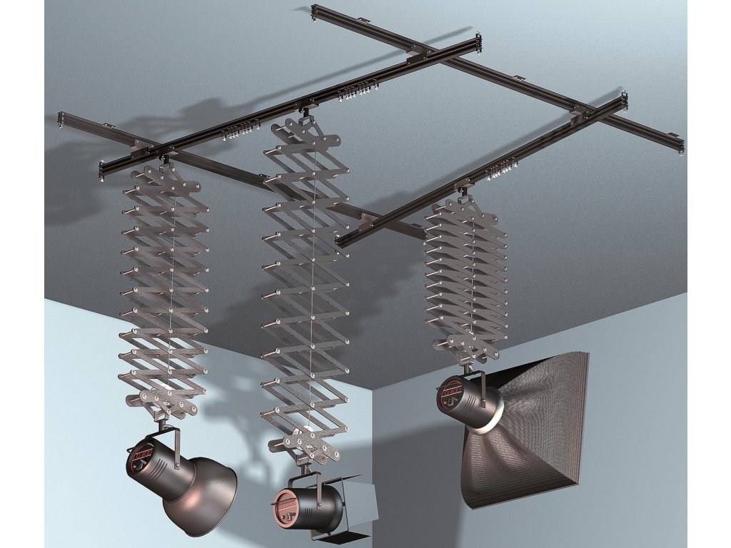 Kompletny zestaw do średnich studiów składający się z 2 stałych szyn o długości 4 m, 2 mobilnych szyn o długości 3 m i wsporników dla 3 źródeł światła (3 pantografy górne).