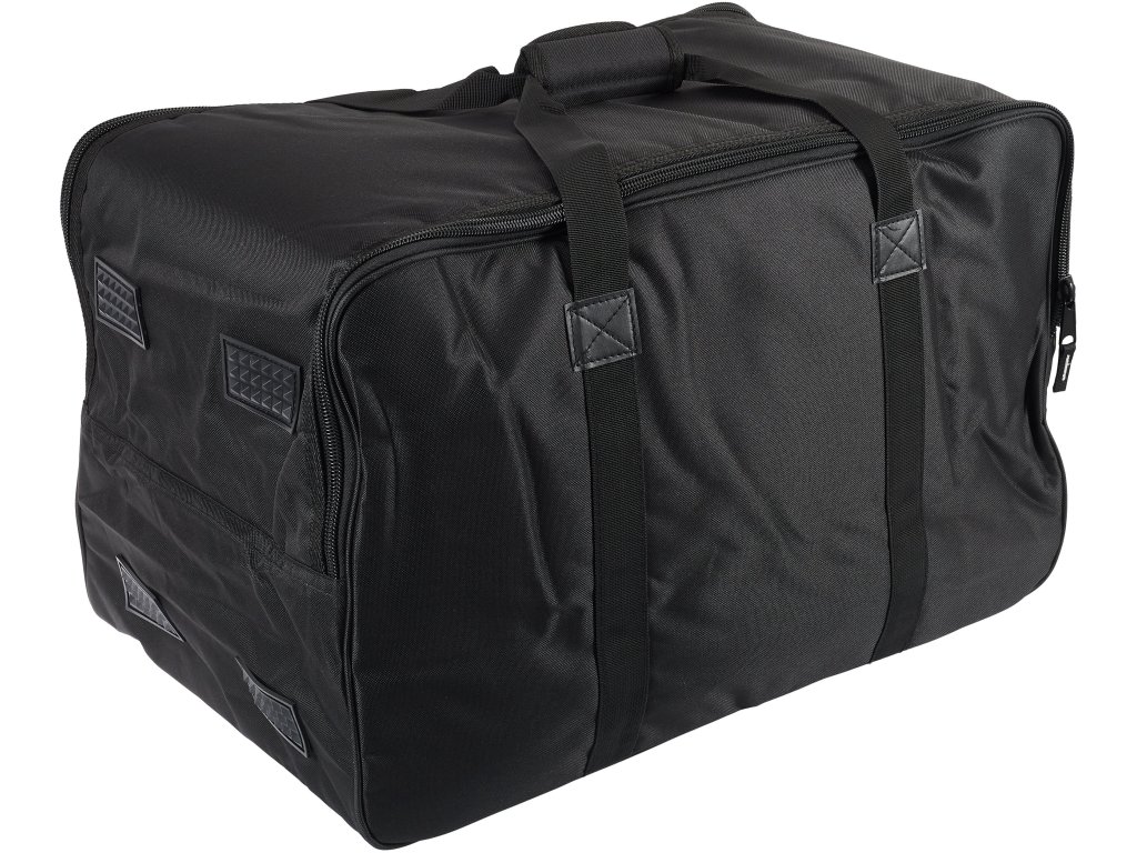 Wysoce wytrzymały pokrowiec transportowy odpowiedni do 10" kolumny głośnikowej Mackie Thump 210 lub 210XT. Pokrowiec posiada grube wyściełanie, przednią kieszeń na kable i drobne akcesoria oraz parę uchwytów do wygodnego transportu. Strona odkładcza jest wyposażona w ochronne gumowe nóżki.