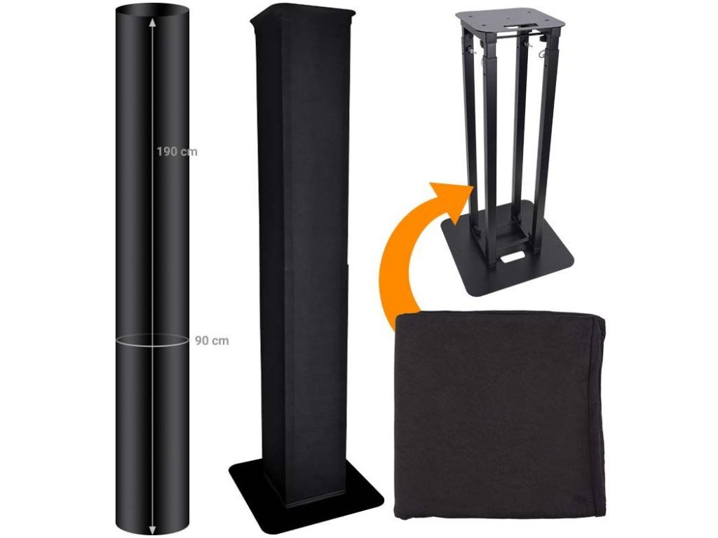 Totem tower scrim WH to elastyczny pokrowiec wykonany z czarnej lycry, przeznaczony do statywów z serii Totem. Pokrowiec ma formę długiego rękawa i naciąga się go na statyw, zakrywając konstrukcję i kable, tworząc elegancką dekorację całego statywu. Materiał jest bardzo wytrzymały i łatwy w czyszczeniu.