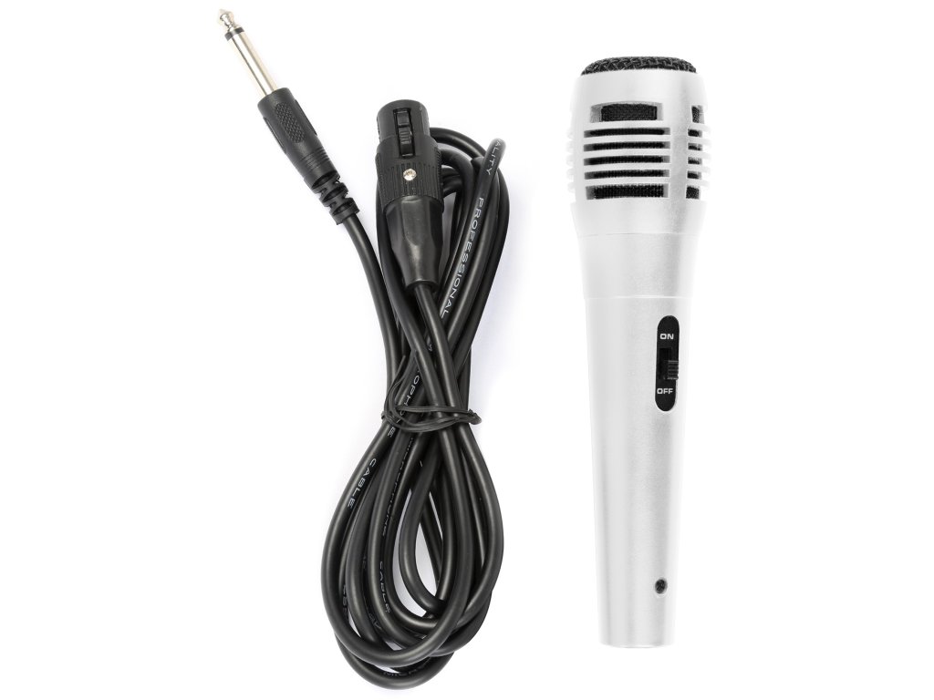 - Akcesoria w zestawie: Pilot zdalnego sterowania (bezprzewodowy), mikrofon (przewodowy), kabel głośnikowy, kabel zasilający