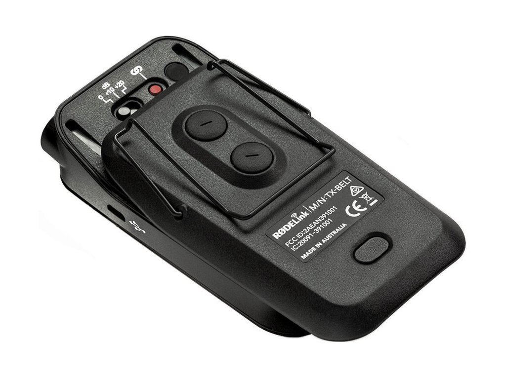 RODE TX-BELT to bezprzewodowy nadajnik z wejściem 3.5mm TRS dla cyfrowego systemu bezprzewodowego RØDELink.