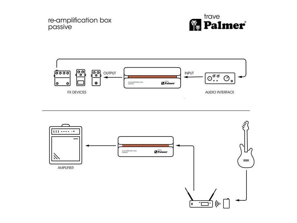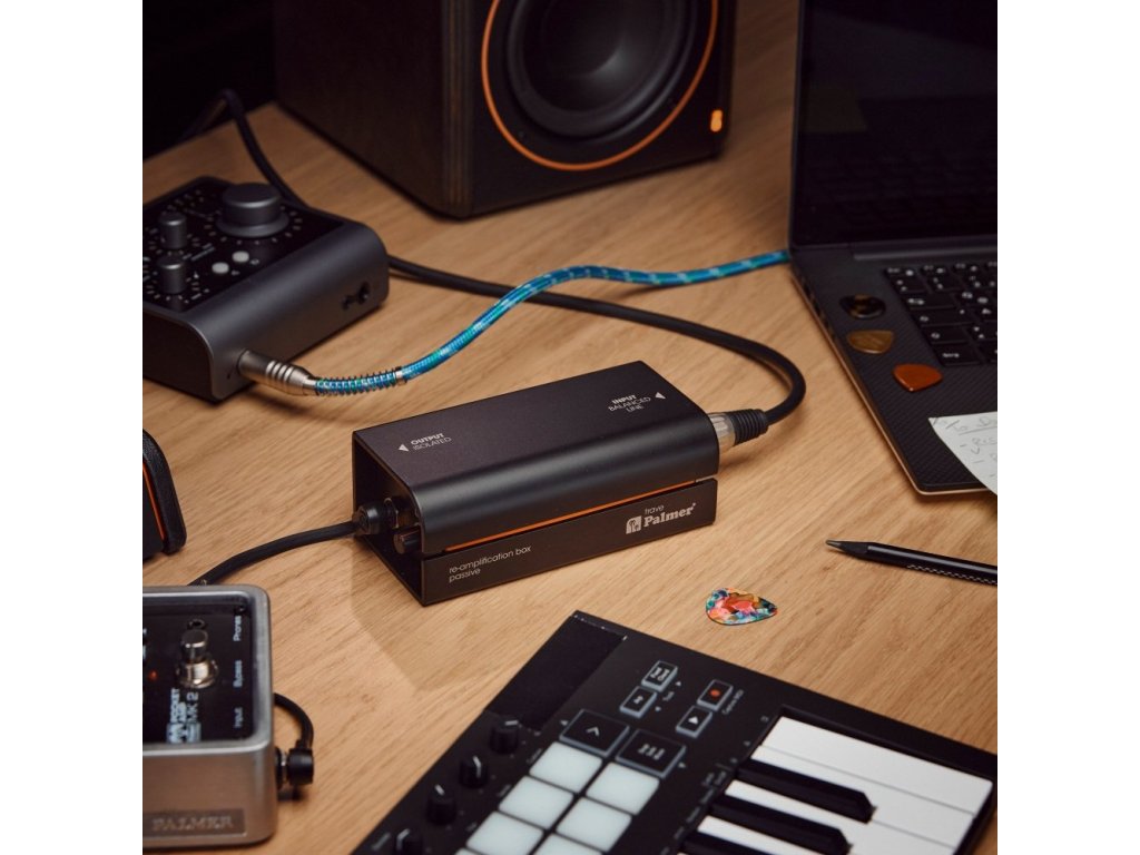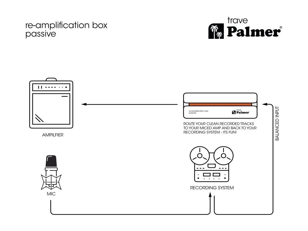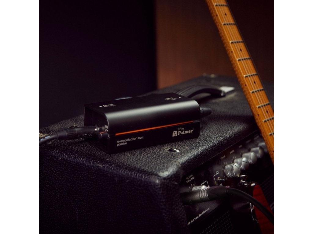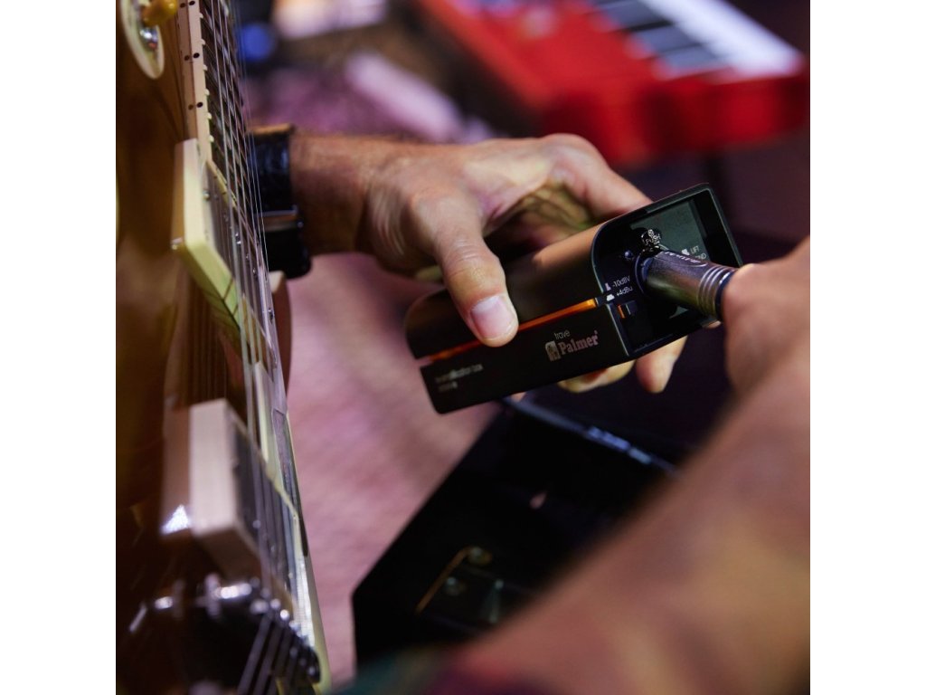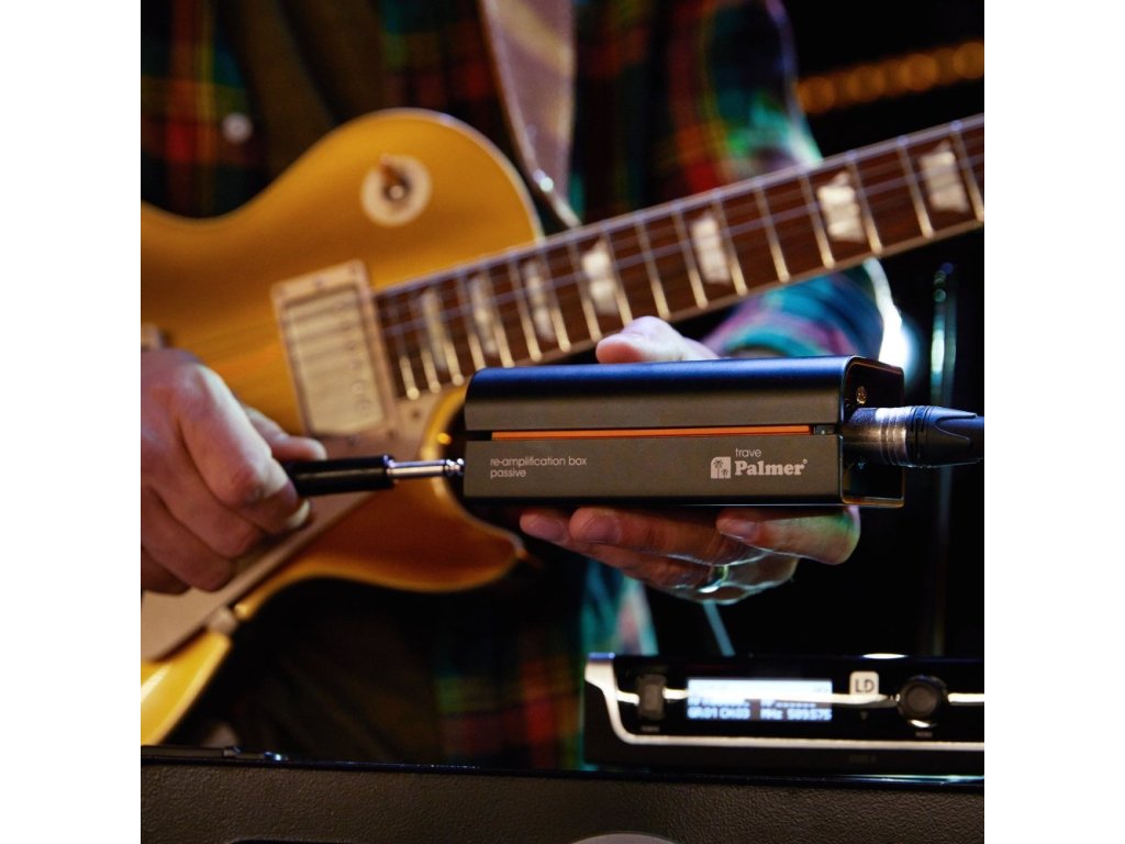 Z Palmer trave możesz doprowadzić wcześniej nagrany "nagi" sygnał DI z gitary lub gitary basowej do wzmacniacza, aby nagrać jego dźwięk przez mikrofon. Palmer trave zapobiega szumom – które w przeciwnym razie prawie nieuchronnie występują, gdy podłączysz interfejs audio lub wyjście miksu do wzmacniacza instrumentalnego. Trave jednocześnie przekształca sygnał liniowy w sygnał niesymetryczny z optymalnie dopasowaną impedancją. Oczywiście ważny jest również odpowiedni poziom. Wejście można przełączać między poziomem konsumenckim (-10 dBV) a poziomem profesjonalnym (+4 dBu). Poziom wyjściowy można płynnie regulować, aby wzmacniacz pracował z dokładnie takim dźwiękiem, jakiego potrzebujesz.