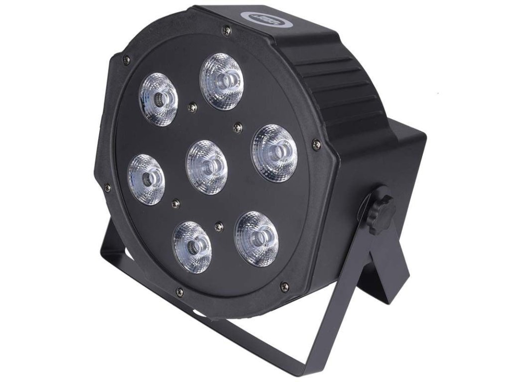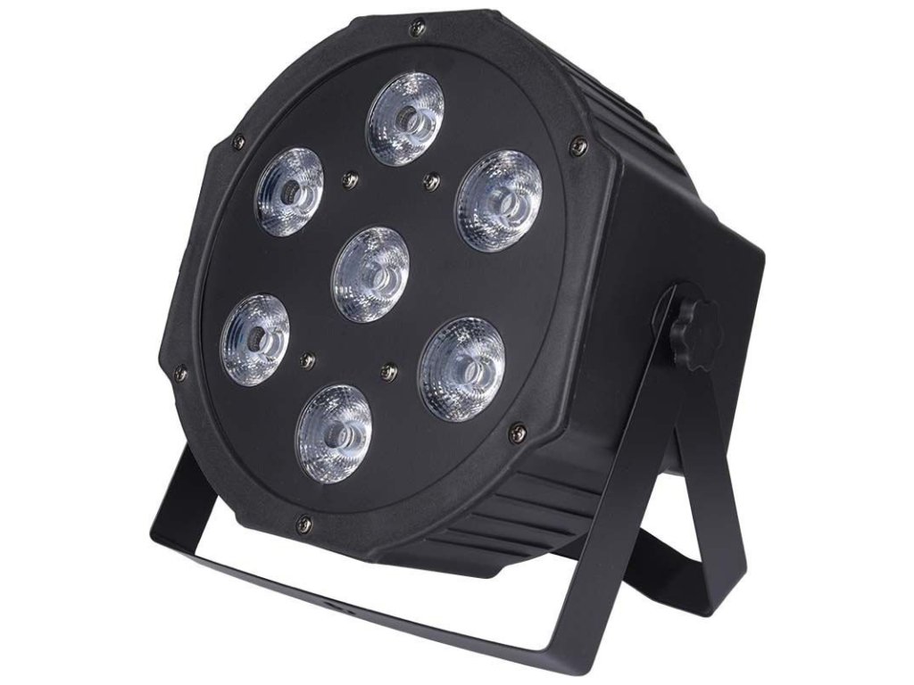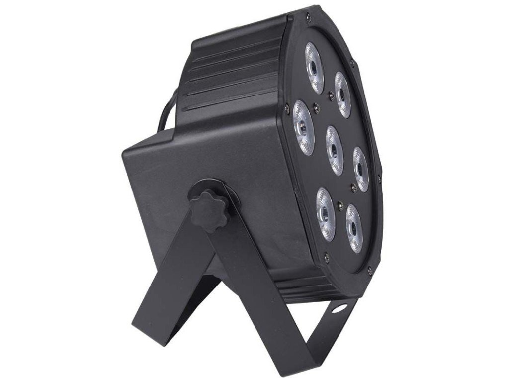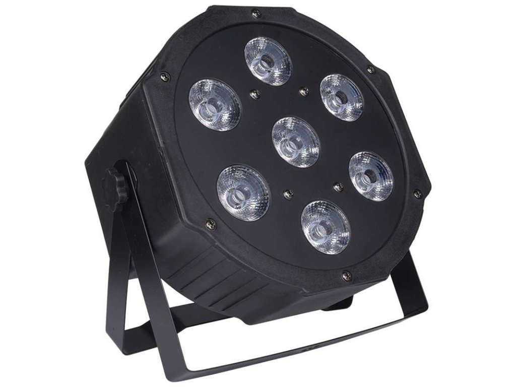 Jeśli chcesz oświetlić scenę, parkiet taneczny lub udekorować salę weselną światłem, potrzebujesz solidnego LED PAR o dużej mocy. To jest reflektor Light4Me Tri Par Basic. Światło jest wyposażone w 7 mocnych, 9-watowych diod LED pracujących w palecie kolorów RGB. Dzięki temu uzyskujemy ponad 16 milionów kombinacji kolorów. Optymalny kąt wiązki 40 stopni zapewnia, że reflektor oświetli dokładnie to, co chcesz.