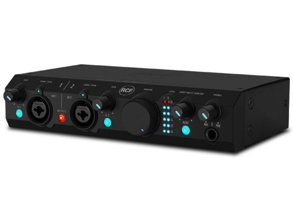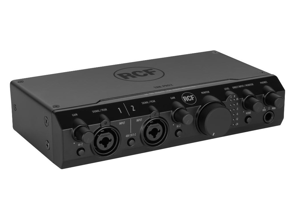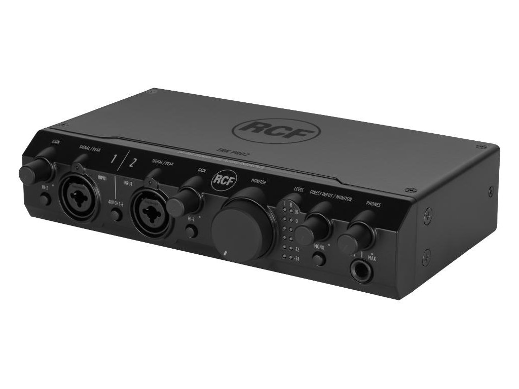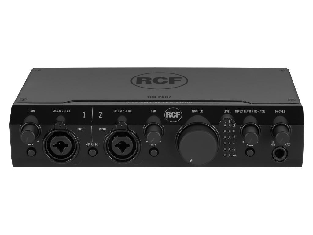 Interfejs sprzętowy RCF TRK PRO2 oferuje w solidnej i dobrze zaprojektowanej obudowie USB 2.0 kompleksowe możliwości podłączenia mikrofonów, instrumentów muzycznych lub źródeł sygnałów liniowych do komputera z systemem Mac lub Windows. Wewnętrzny liniowy obwód przedwzmacniacza umożliwia podłączenie mikrofonów z zasilaniem phantom 48 V, a także instrumentów muzycznych o wysokim poziomie wyjściowym (Hi-Z). Sygnał audio może być kierowany do DAW (Digital Audio Workstation) w rozdzielczości do 24-bit/192 kHz. Interfejs można podłączyć do wzmacniacza i głośników, aktywnych monitorów, słuchawek, analogowego miksera lub dowolnego innego analogowego urządzenia audio.
