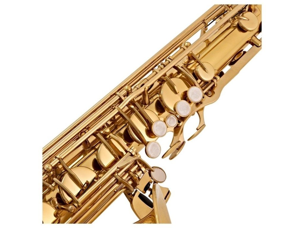 – Zawartość opakowania: Saksofon tenorowy, szyjka, ustnik, futerał, ściereczka, rękawice, 3 paski, olej do zaworów