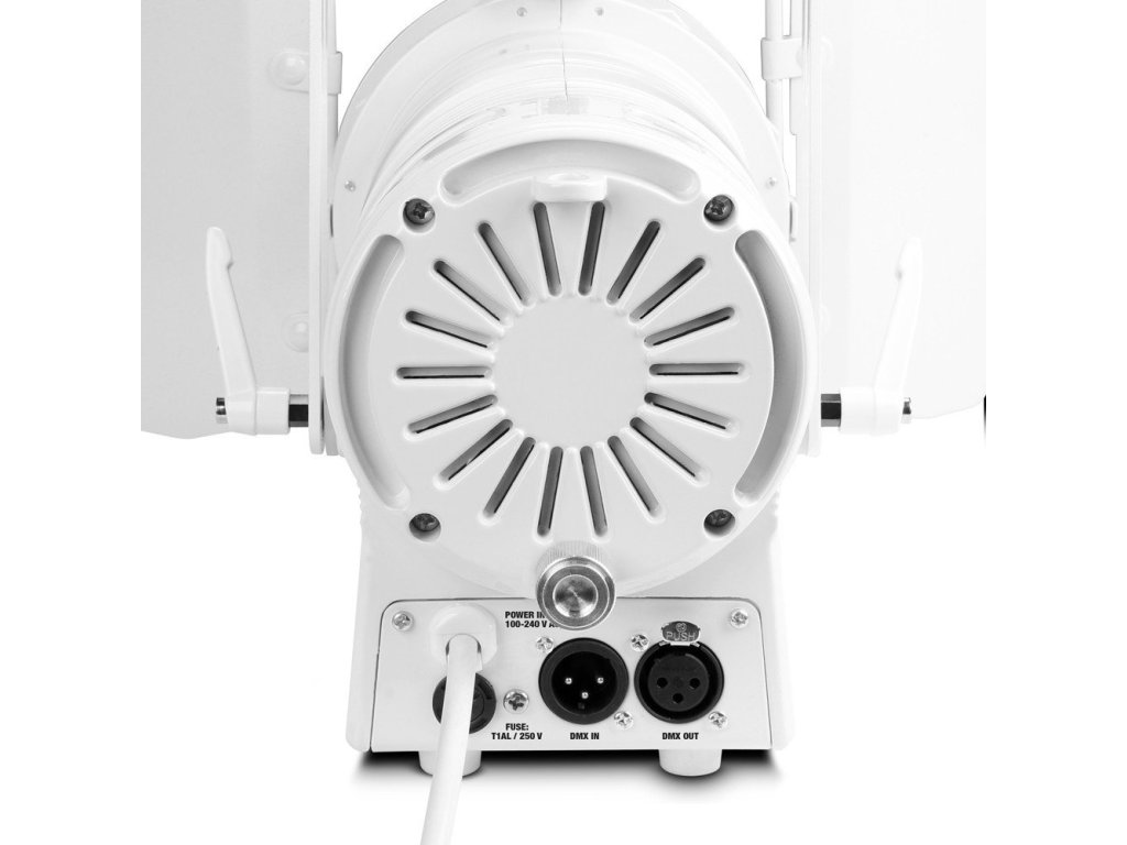 Funkcje reflektora DMX obejmują szybki stroboskop z regulowaną częstotliwością błysku od 1 do 20 Hz oraz wybór krzywych ściemniania. Częstotliwość odświeżania 1200 Hz zapewnia działanie bez migotania. TS 40 WW WH jest dostarczany w wytrzymałej metalowej obudowie z wydajnym chłodzeniem konwekcyjnym. Posiada 4-przyciskowy wyświetlacz ułatwiający konfigurację, 3-pinowe złącza DMX i złącze zasilania IEC. W zestawie znajdują się obrotowe wrota stodoły w kształcie wiązki i ramka filtra kolorów.