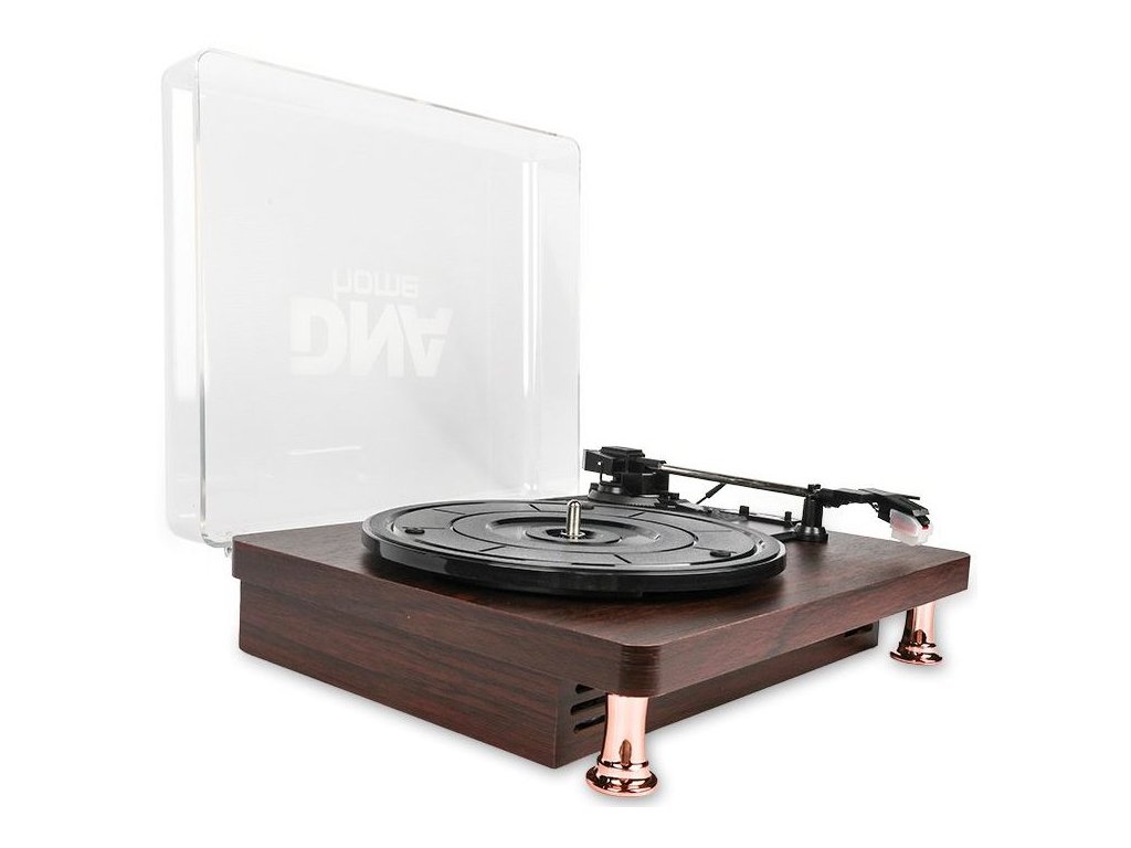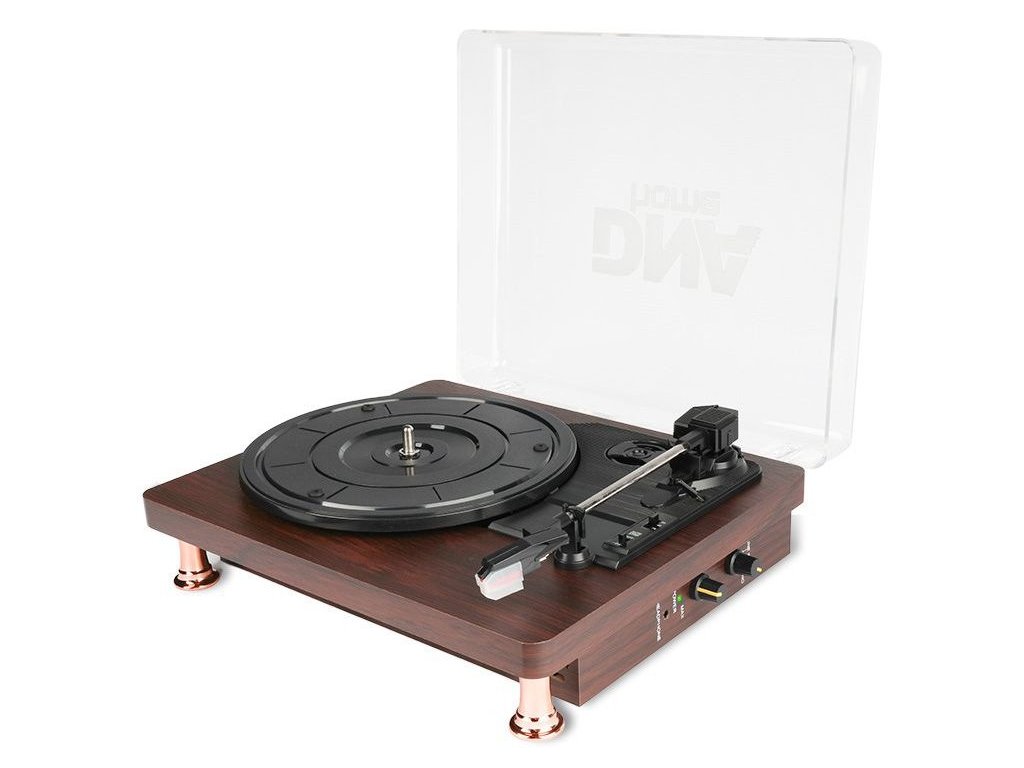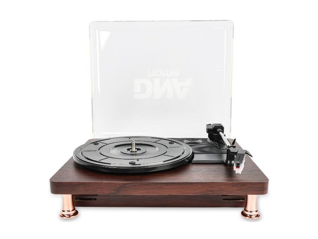DNA TT1 to stylowy gramofon z wejściem AUX, wyjściem RCA, złączem słuchawkowym i obsługą Bluetooth. Dzięki eleganckiej obudowie z mahoniu i przezroczystej pokrywie oraz wysokiej jakości komponentom elektronicznym, gramofon doskonale odtwarza dźwięk z klasycznych płyt winylowych i świetnie wygląda w każdym pomieszczeniu. To elegancki gramofon nie tylko do domu, ale także świetny dodatek do stylowego klubu, kawiarni lub stylowej restauracji.