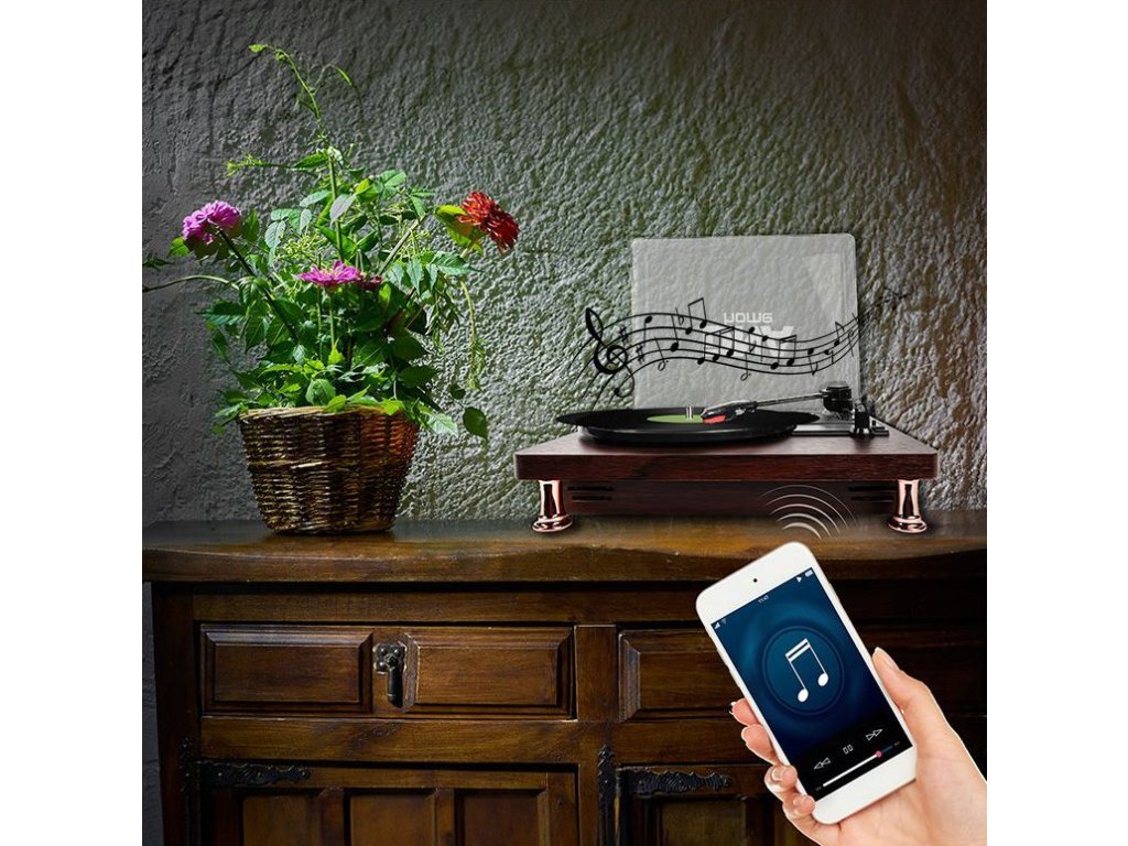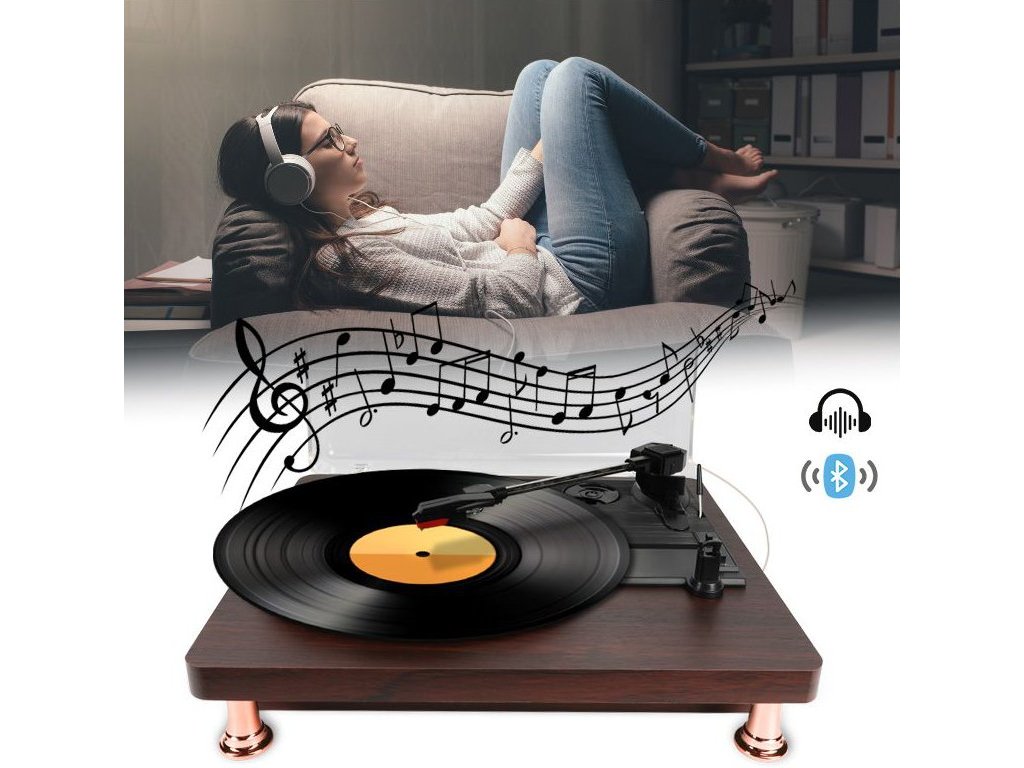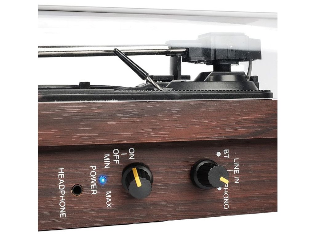 Gramofon z Bluetooth, wyjściem RCA, AUX i wyjściem słuchawkowym