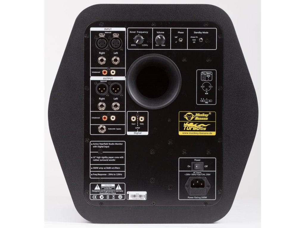 Monkey Banana Turbo 10s to aktywny subwoofer, który wzbogaci Twój zestaw monitorów odsłuchowych o najniższą część spektrum dźwięku. Dzięki 10" membranie i wzmacniaczowi o mocy 300 W nie umknie Ci nic, nawet z najgłębszych basów, niezależnie od tego, czy miksujesz, czy po prostu słuchasz utworów.
