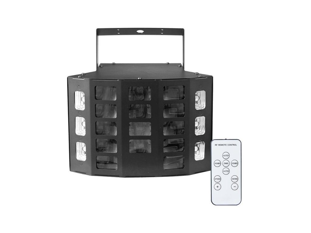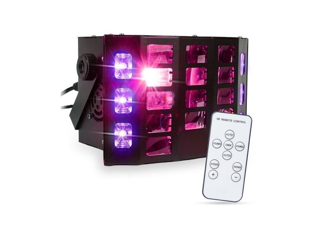 Jedną z najważniejszych zalet źródła światła LIGHT4ME TURBO DERBY 3IN1 jest jego szeroki zakres funkcji. Urządzenie oferuje pełnowartościowy ściemniacz, który umożliwia precyzyjne dostrojenie jasności światła do warunków na scenie. Urządzenie oświetleniowe może pracować w trybach automatycznym, dźwiękowym, master/slave i DMX. Dzięki nim użytkownik ma niemal pełną kontrolę nad tworzonymi efektami świetlnymi i może dostosować oświetlenie do dowolnych warunków. Dzięki możliwości sterowania za pomocą bezprzewodowego pilota RF użytkowanie jest niezwykle wygodne, co docenią zarówno profesjonalni DJ-e, jak i organizatorzy imprez specjalnych.
