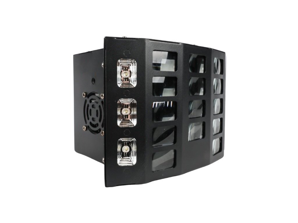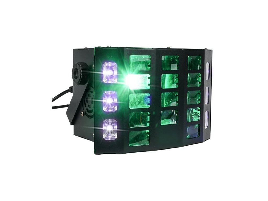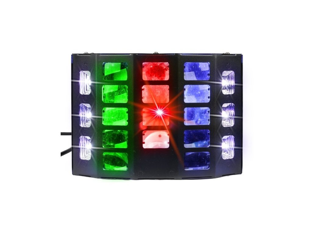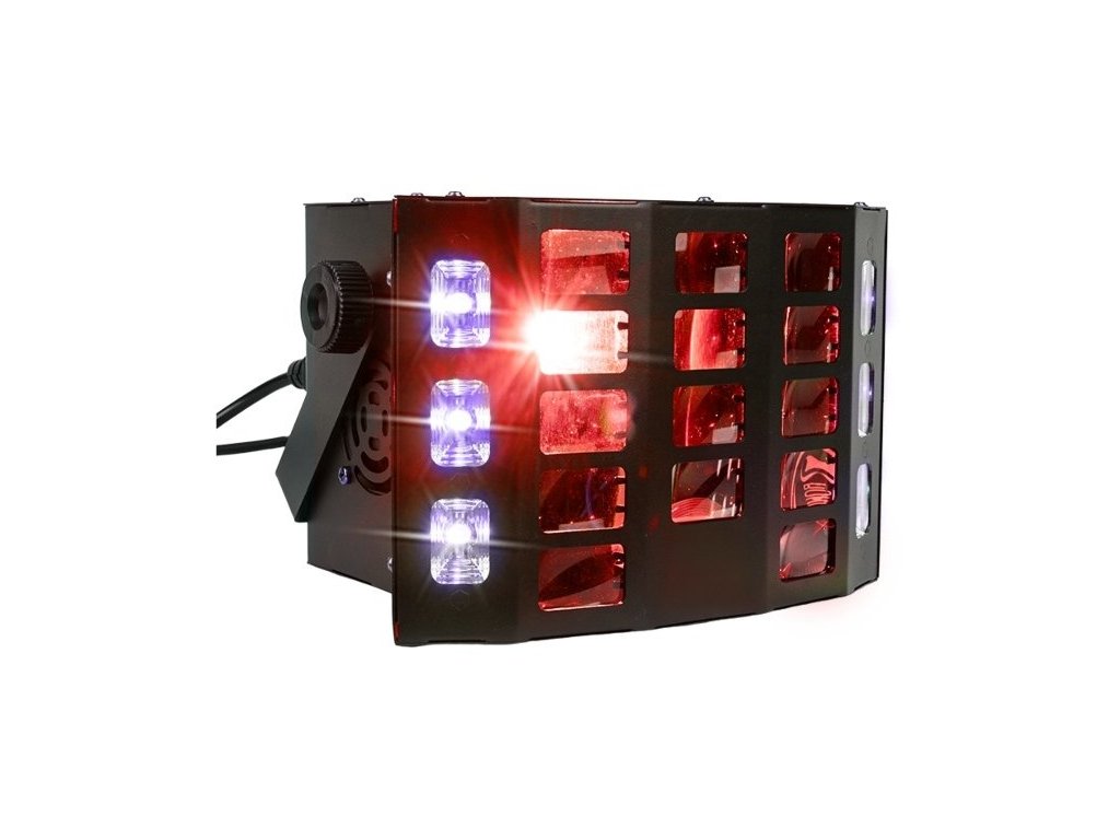LIGHT4ME TURBO DERBY 3IN1 to RGBW-UV LED świetlny multiefekt. Dzięki wydajnemu źródłu światła, które składa się z dwóch diod LED RGBW po 15 W i sześciu diod LED UV+W po 6 W, oferuje jasne i przyciągające wzrok efekty wizualne, które zadowolą nawet najbardziej wymagających użytkowników. Dzięki niskiemu zużyciu energii urządzenie jest energooszczędne, co jest ważną zaletą podczas długotrwałych imprez. Wąski kąt świecenia umożliwia doskonałe oświetlenie wybranych obszarów, co jest nieocenione w miejscach takich jak małe kluby i sale weselne.