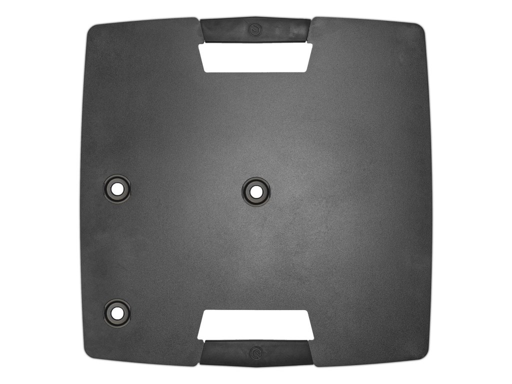 Czworokątna podstawa do statywu z umiejscowieniem poza środkiem.