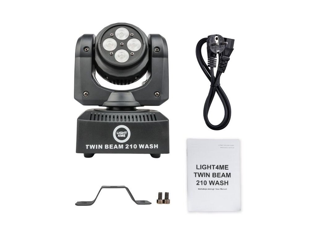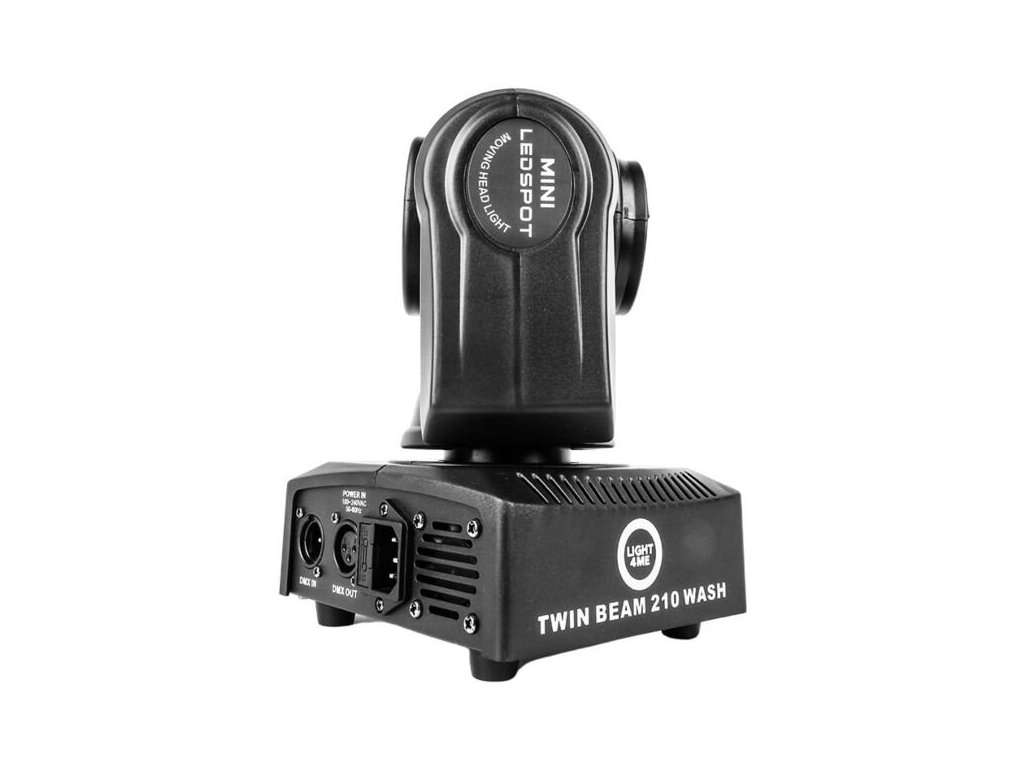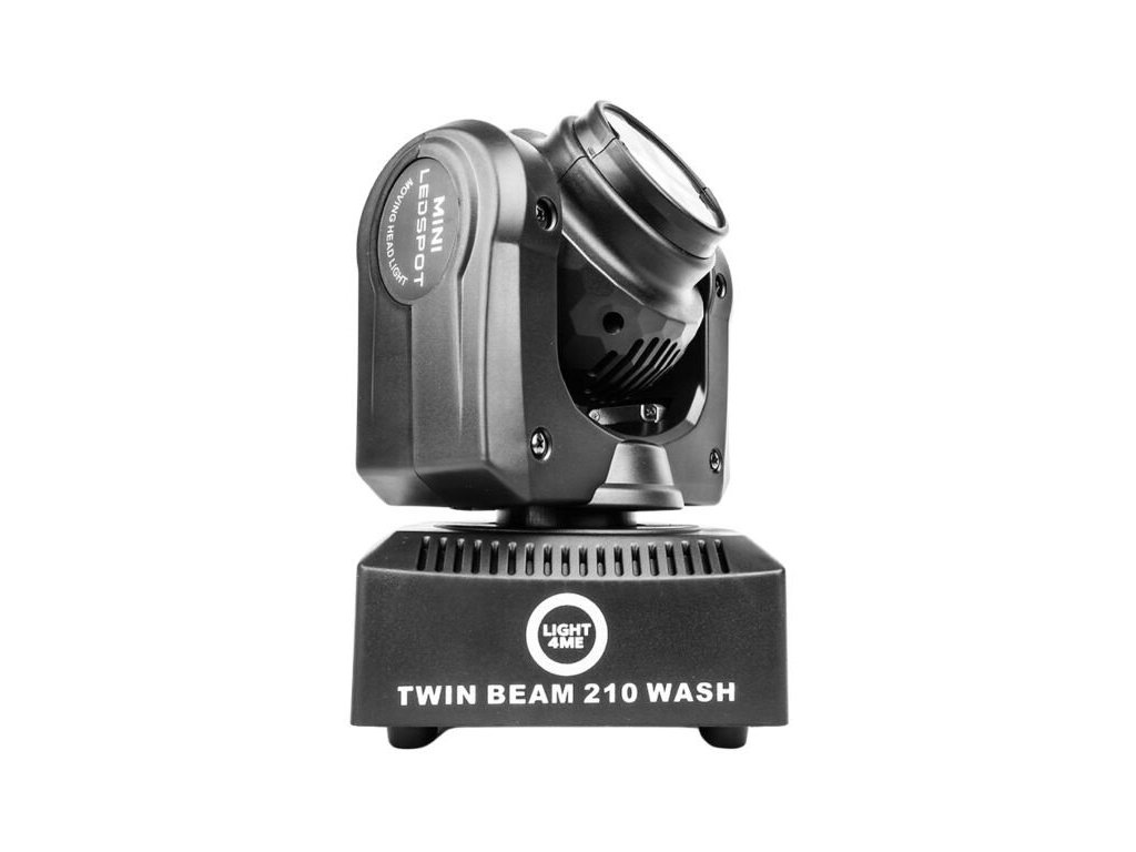 LIGHT4ME TWIN BEAM 210 WASH to mała i lekka dwustronna ruchoma głowica, która z jednej strony jest wyposażona w wydajną 15-watową diodę RGBW LED z soczewką, a z drugiej strony w cztery 10-watowe diody RGBW wash. Oba strumienie światła są emitowane w przeciwnych kierunkach. Dużą zaletą Twin Beam jest również możliwość nieograniczonego obracania źródła światła w osi pionowej. Dzięki temu ta głowica tworzy takie oświetlenie, które idealnie nadaje się do klubów tanecznych, na małych scenach muzycznych, na studniówkach, urodzinach, na prywatnych przyjęciach lub dla mobilnych DJ-ów.