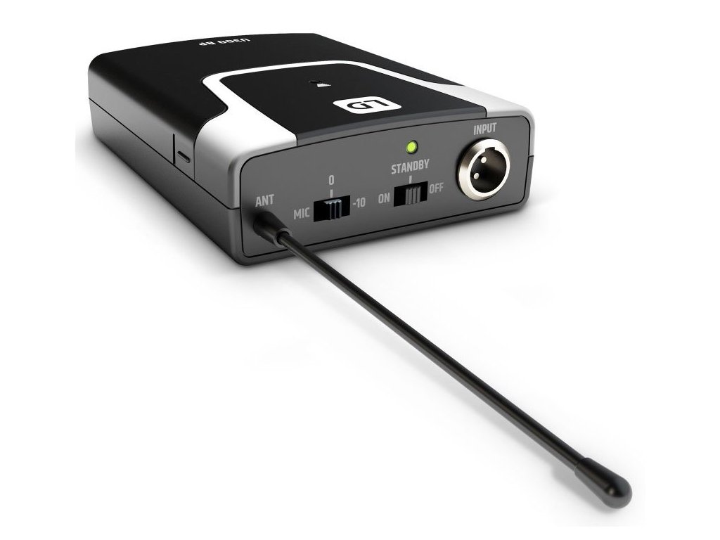 Bezprzewodowy system mikrofonowy z bodypackiem i mikrofonem do instrumentów dętych – 863–865 MHz + 823–832 MHz.