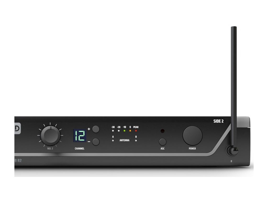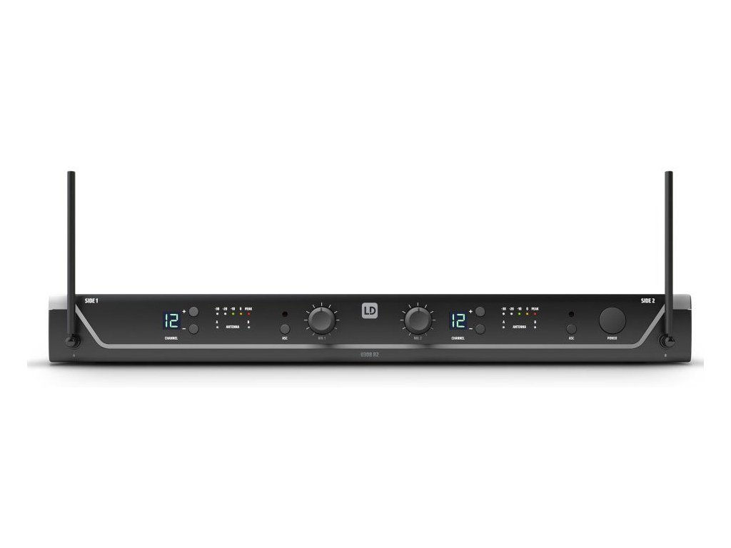12-kanałowy odbiornik dualny UHF serii U300 R2 pracuje w technologii FM w pasmach częstotliwości 863 - 865 MHz + 823 - 832 MHz i oferuje odpowiedź częstotliwościową od 35 Hz do 16 kHz. Wygodna synchronizacja jednym dotknięciem przez interfejs podczerwieni zapewnia szybkie i bezproblemowe połączenie bezprzewodowe z nadajnikiem ręcznym, mikrofonem lub bodypackiem z tej samej serii. Squelch z tonem pilotującym zapewnia nieprzerwaną pracę. Odbiornik dualny U308 R2 charakteryzuje się elegancką metalową obudową z jasnym wyświetlaczem LCD kanałów, przyciskami wyboru kanałów i diodami LED, które wyświetlają siłę sygnału audio i aktywną antenę. Dwa zbalansowane wyjścia XLR i dwa niezbalansowane wyjścia jack 6,35 mm znajdują się na tylnym panelu i można je przełączyć na poziom instrumentalny w celu bezpośredniego podłączenia do wzmacniaczy gitarowych i basowych. W zestawie zasilacz.