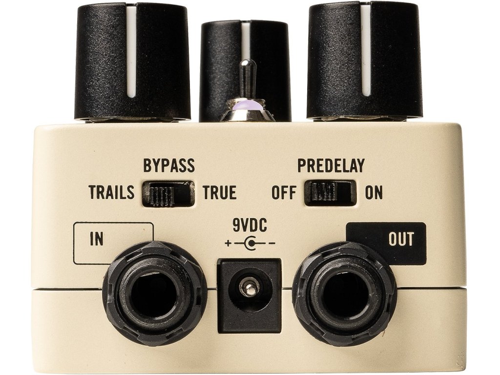 To pedał efektów gitarowych z emulacją trzech ikonicznych studyjnych cyfrowych pogłosów – Room, Small Hall i Large Hall z lat 80., które do dziś mają znaczący wpływ na charakter wielu cenionych miksów. Mod oferuje charakter pogłosu, trzypasmowe korekcje Bass, Mid, Treble dopasowują barwę, a Mix ustawia proporcje między efektem a sygnałem bezpośrednim. Przełącznik Bypass True/Trails umożliwia płynne wybrzmiewanie reverbu nawet po wyłączeniu efektu, a Predelay opóźnienie rozpoczęcia reverbu.