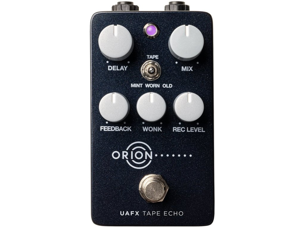 Orion Echo to gitarowy pedał efektowy z tym samym algorytmem co Starlight Echo Station. Oferuje trzy emulacje echa taśmowego - vintage tape delay, Wow/Flutter dla realistycznej emulacji taśmy magnetofonowej. Bypass True/Buffered umożliwia płynne wybrzmiewanie echa nawet po wyłączeniu efektu, a Preamp On/Off aktywuje emulację preampu.