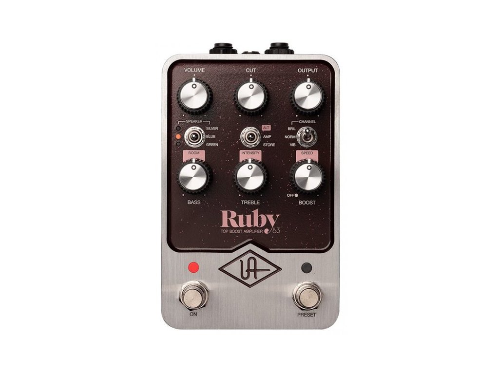 Ruby '63 Top Boost Amplifier to stereofoniczny pedał emulujący legendarne wzmacniacze gitarowe VOX AC 30 z trzema kanałami (Normal, Brilliant i Vibrato), opcjonalnymi głośnikami (do 6 typów), przedwzmacniaczami boost, efektem vibrato/tremolo i możliwościami dalszego dostosowania za pomocą aplikacji mobilnej. Zminimalizuj swój gitarowy live rig, używając efektu Ruby '63 w pedalboardzie zamiast rzeczywistego wzmacniacza, lub nagrywaj gotowy dźwięk bezpośrednio do DAW.
