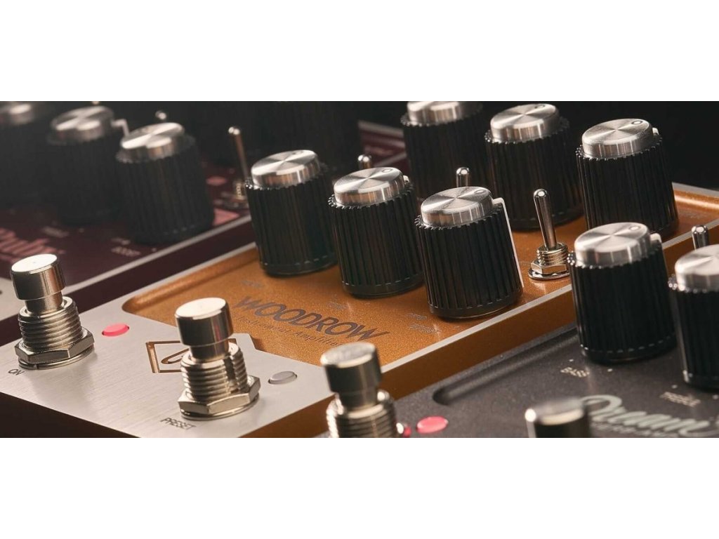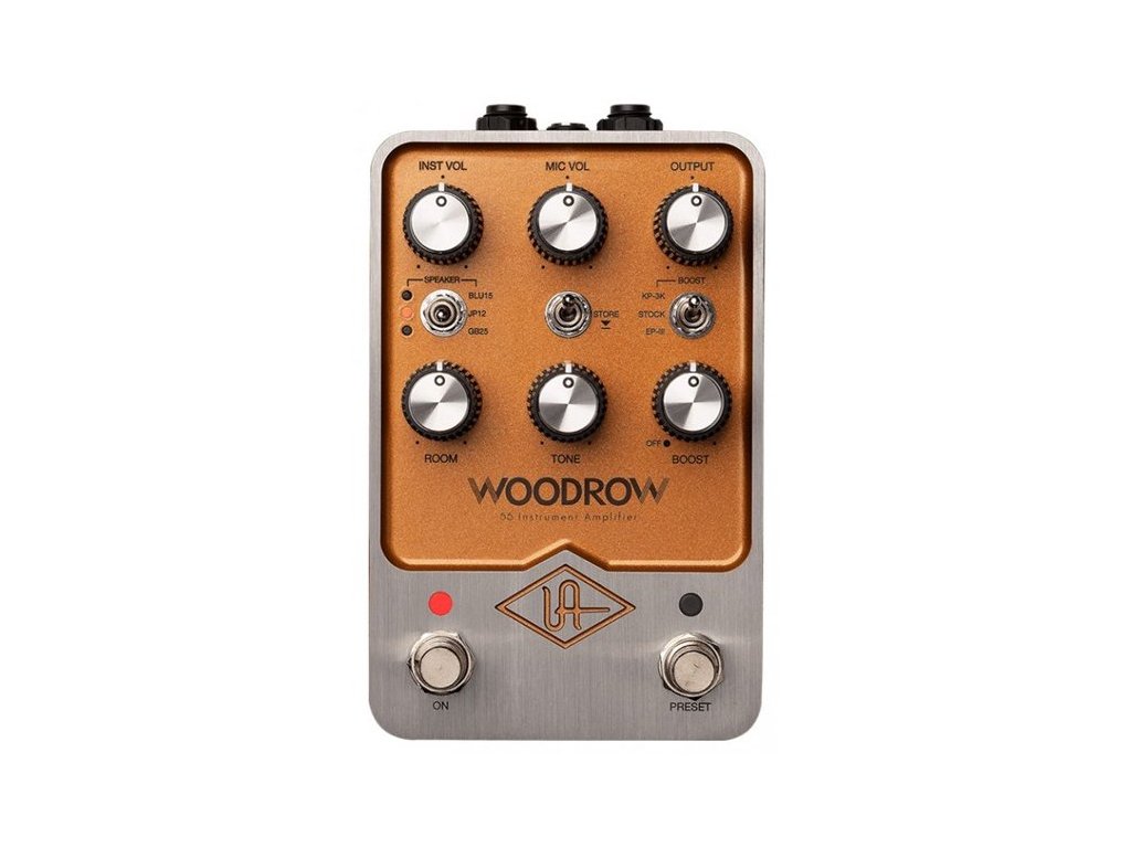 UAFX Woodrow '55 Instrument Amplifier to stereofoniczny pedał emulujący legendarny wzmacniacz gitarowy ’55 Fender Tweed Deluxe z opcjonalnym głośnikiem (do 6 typów), trzema obwodami przedwzmacniaczy dla boost i możliwościami dalszego dostosowania za pomocą aplikacji mobilnej. Zminimalizuj swój gitarowy live rig, używając efektu Woodrow '55 w pedalboardzie zamiast rzeczywistego wzmacniacza, lub nagrywaj gotowy dźwięk bezpośrednio do DAW.