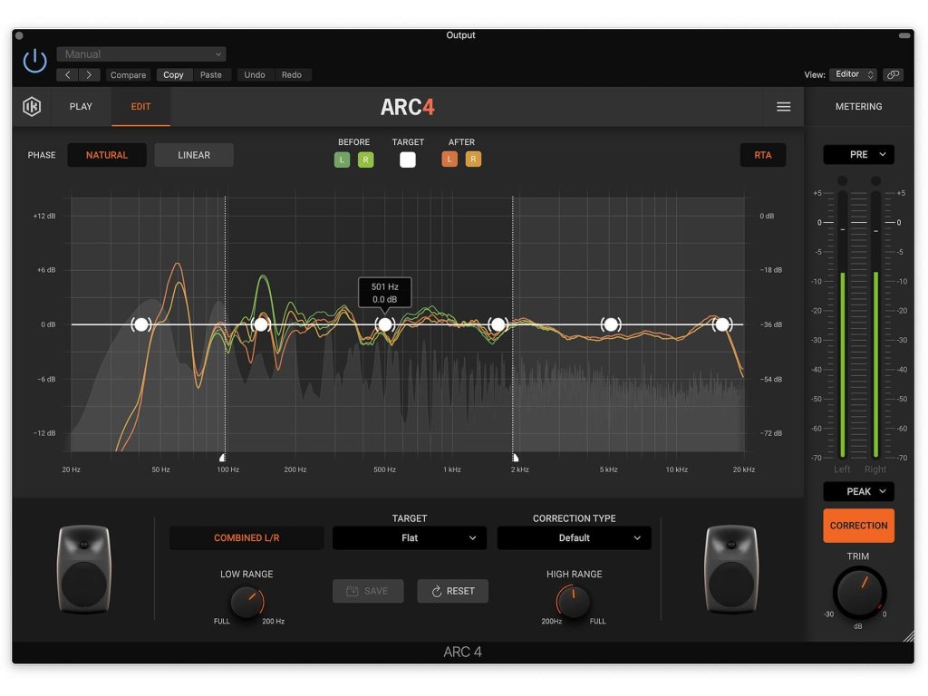 Domyślnie ARC koryguje całe spektrum częstotliwości. Można jednak zdefiniować np. górne i dolne limity, aby zachować unikalny charakter brzmieniowy monitorów. Można również korygować tylko określoną część zakresu częstotliwości.