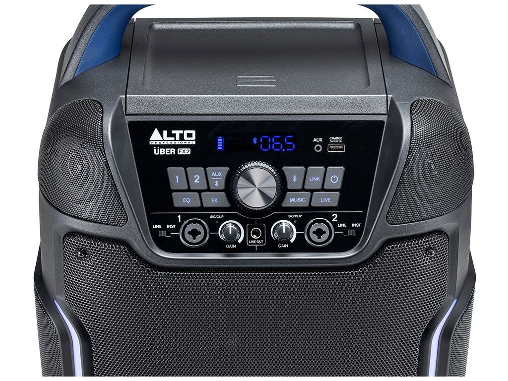 Innowacyjny system 5 głośników o mocy 200 W jest wyposażony w 8-calowy głośnik niskotonowy, stereofoniczne głośniki wysokotonowe i boczne przetworniki pełnozakresowe, które zapewniają 320° przestrzeń odsłuchową. Boczne głośniki umożliwiają również doskonały monitoring występów na żywo. UBER FX MK2 jest wyposażony w dwa kanały wejściowe, każdy z własną niezależną regulacją głośności i 2-pasmowym korektorem oraz efektami cyfrowymi, a dodatkowo dostępny jest trzeci wejście AUX 3,5 mm.