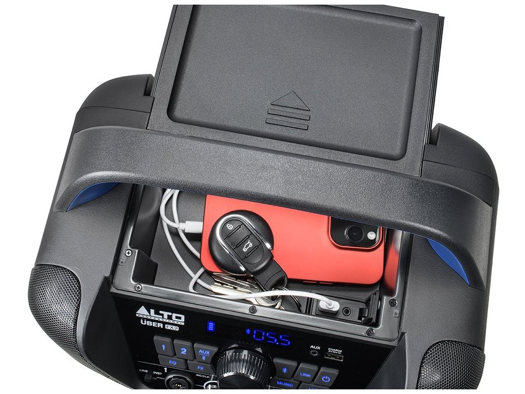 Dzięki teleskopowemu uchwytowi i kółkom Uber FX MK2 jest niezwykle łatwy w transporcie. Posiada również praktyczny górny schowek, boczny otwieracz do butelek i oświetlenie na panelu przednim. Dostępne są również dwa porty USB do ładowania, dzięki czemu można bez problemu ładować swoje urządzenia.