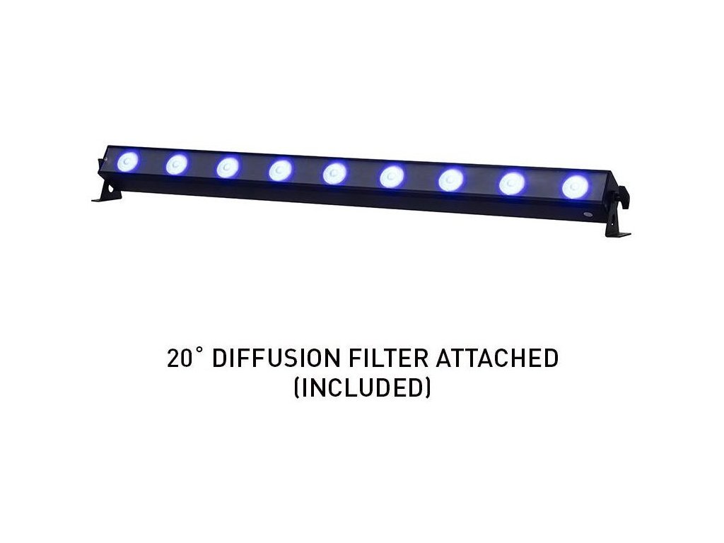 Model UBL9H z kątem świecenia 17° i rozstawem pikseli 85,5 mm oferuje płynne mieszanie kolorów RGBAL+UV. Unikalny system łączenia Horizontal Magnetic Alignment umożliwia płynne wyjście kolorów przy połączeniu wielu jednostek. Obsługa jest prosta i przyjazna dla użytkownika dzięki wyświetlaczowi OLED i 4 przyciskom, zapewniającym liniowe sterowanie temperaturą barwową i kompatybilność z pilotem ADJ UC-IR24. UBL9H obsługuje 7 trybów kanałów DMX i oferuje 5 trybów pracy, w tym Auto Run, Program Mode, Sound Trigger, RGBAL+UV Manual i DMX-512. Te LED bary są również kompatybilne z RDM.
