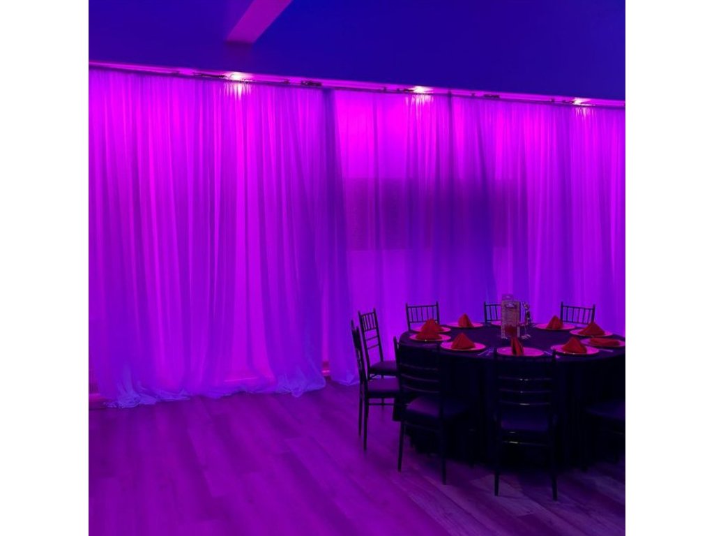 - Tryby pracy: 5 (Auto Run, Program Mode, Sound Trigger, RGBAL+UV Manual. DMX-512 Mode)