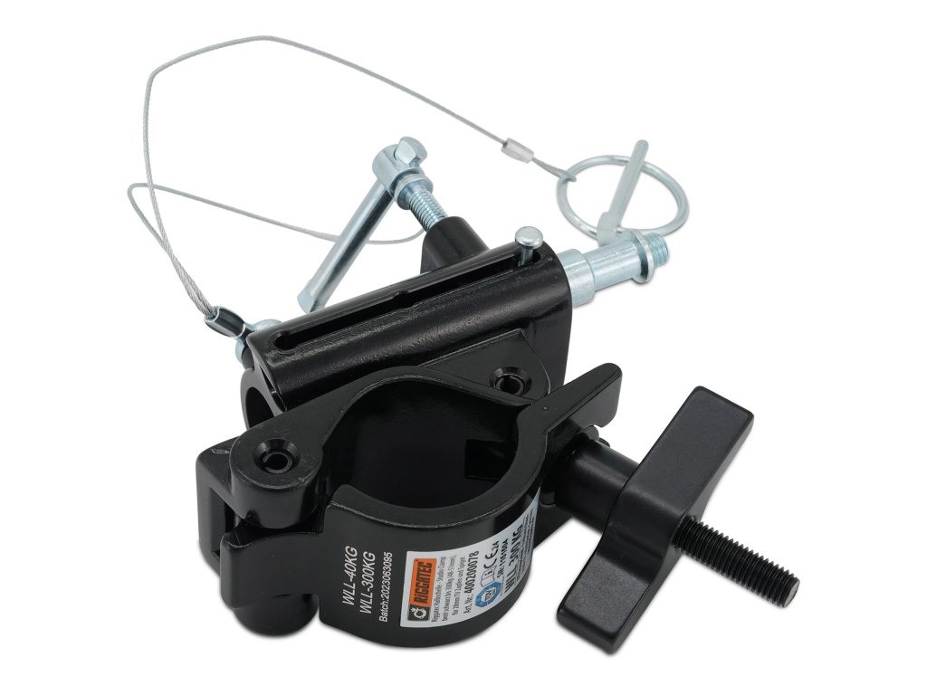 Ten solidny półzacisk został zaprojektowany do niezawodnego i bezpiecznego mocowania ciężkiego sprzętu, takiego jak oświetlenie i głośniki. Pierwotnie opracowany do wymagających warunków studyjnych, teraz oferuje swoje zalety również do szerszego zastosowania.