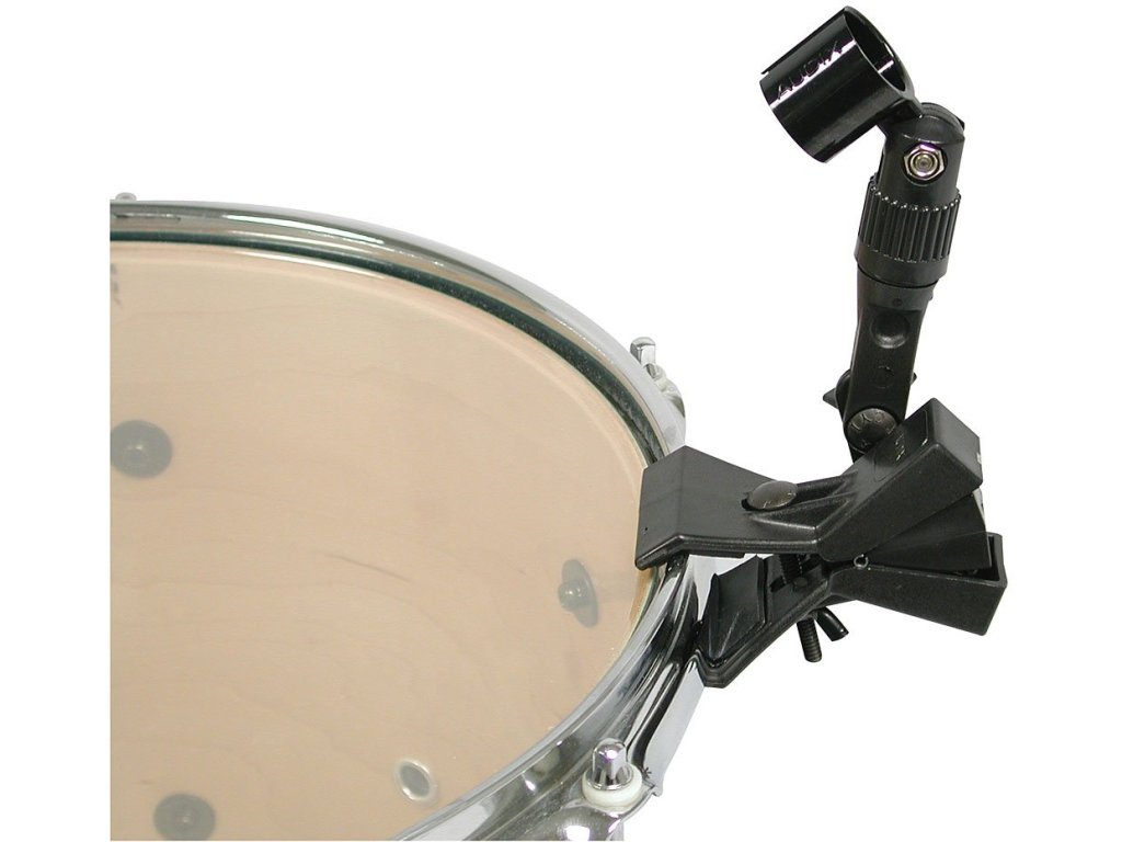 Uchwyt mikrofonowy do instrumentów perkusyjnych do bezpośredniego mocowania na obręczy. Klips mocujący.