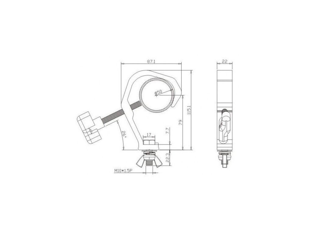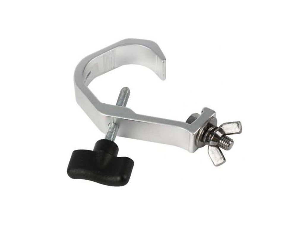 Profesjonalny clamp przeznaczony do rur o średnicy od 48 do 51 mm. Uchwyt umożliwia mocowanie reflektorów, efektów świetlnych i innego wyposażenia scenicznego do różnych typów konstrukcji kratownicowych. Uchwyt jest w całości wykonany z lekkiego i bardzo wytrzymałego aluminium. Wytrzymuje obciążenie do 50 kg, dzięki czemu idealnie nadaje się do zawieszania ruchomych głów i innych rodzajów cięższego sprzętu. Dzięki specjalnej konstrukcji zawieszenia nie trzeba podtrzymywać urządzenia podczas mocowania. Wystarczy clamp z przymocowanym urządzeniem zawiesić na rurze nośnej, a całe urządzenie od razu samo wisi. Urządzenie można puścić, a mając wolne ręce, można odpowiednio dostosować jego położenie. Dzięki temu rozwiązaniu montaż sprzętu na konstrukcji kratownicowej jest wygodny i znacznie szybszy niż w przypadku innych typów uchwytów. Jest to doskonały zacisk sceniczny renomowanej marki Stand4Me.