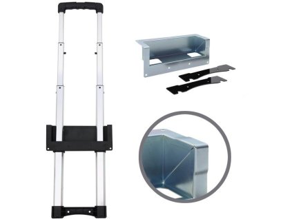 Dla wygodnego transportu walizek i kuferków dostarczamy wysuwane uchwyty z rur aluminiowych do montażu wpuszczanego i powierzchniowego oraz zdejmowane wózki z kółkami.