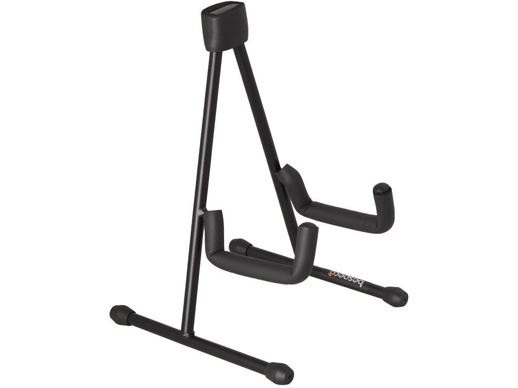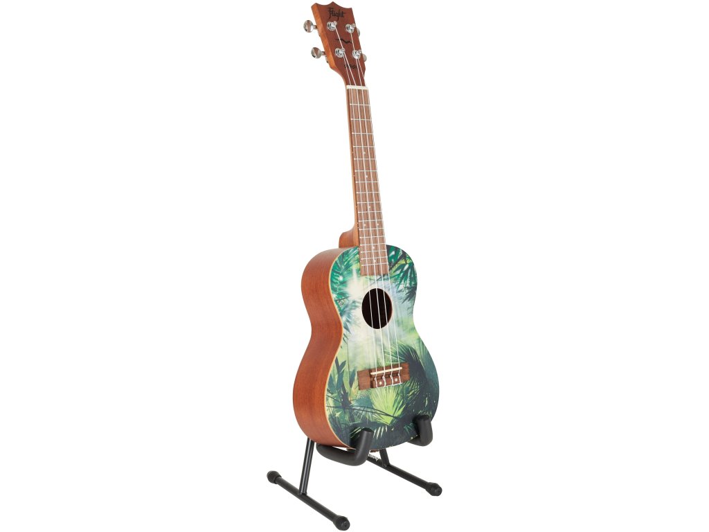 Uniwersalny statyw typu A do ukulele wykonany jest z mocnego metalu pokrytego miękką pianką, która zapobiega zarysowaniu instrumentu. Przy wysokości 40 cm i rozpiętości 28 cm pomieści wszystkie ukulele sopranowe, koncertowe i tenorowe.