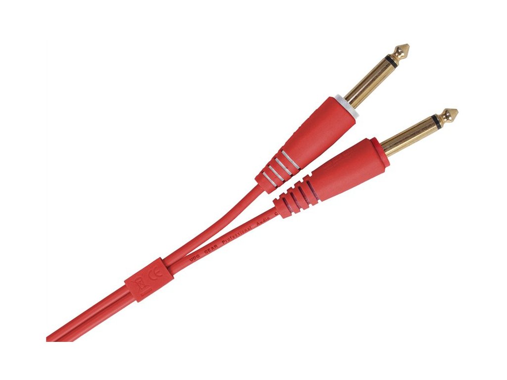 Podwójny kabel audio ze złączami TS 6,3 mm (duży jack) do podłączania urządzeń DJ, profesjonalnych i komercyjnych, pozłacane styki złączy, wysokiej jakości ekranowanie, odporność mechaniczna, kolor czerwony.
