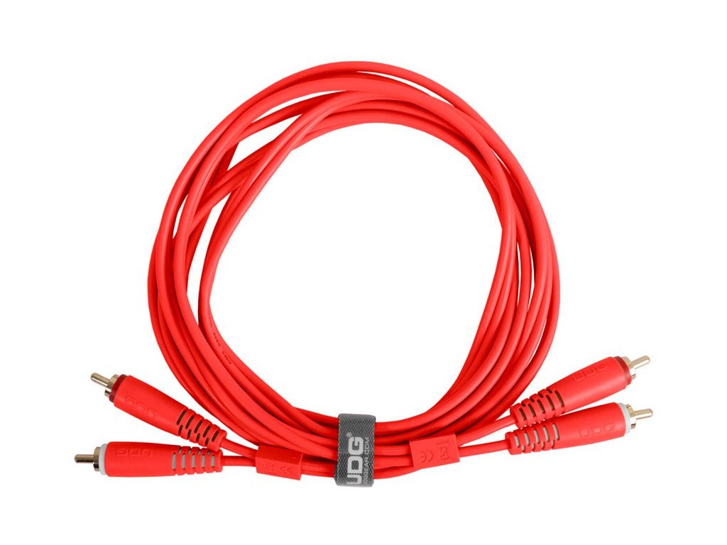 Podwójny kabel audio ze złączami RCA (cinch) do podłączania DJ-ów, profesjonalnych i komercyjnych urządzeń, pozłacane styki złączy, wysokiej jakości ekranowanie, odporność mechaniczna, kolor czerwony.