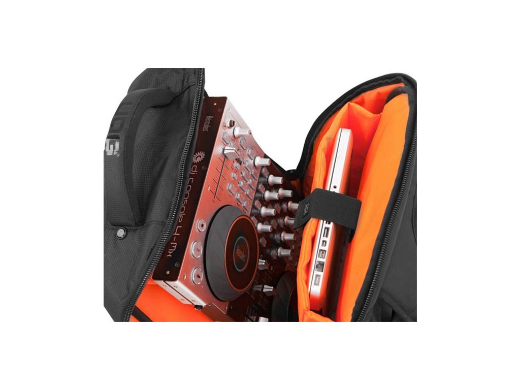- Pomieści: do 17" laptopa, płyty winylowe, 10" kontroler MIDI, kartę dźwiękową, odtwarzacz MP3, magazyny i drobne akcesoria