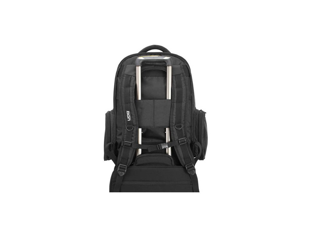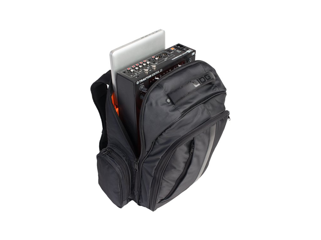 UDG Ultimate Backpack to plecak zaprojektowany do codziennego użytku. Przeznaczony jest dla wszystkich cyfrowych DJ-ów w podróży. Wykonany jest z wysokiej jakości wodoodpornego nylonu. Pomieści laptopa 17" a jego główna kieszeń może pomieścić Native Instruments Maschnine MK2 lub podobnej wielkości kontroler MIDI. Posiada również bardzo łatwo dostępną kieszeń na słuchawki i dwie boczne kieszenie na zamek błyskawiczny, które są odpowiednie na mniejsze akcesoria, takie jak klucze USB, karty SD, kable, adaptery lub odtwarzacze MP3. Plecak posiada również pas do mocowania na serii UDG Trolley.