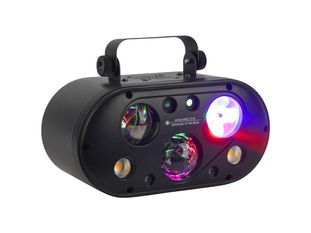 Light4Me Ultrabox 1 to wysokiej jakości wielofunkcyjny efekt świetlny LED RGBA, który idealnie sprawdzi się do wzbogacenia wizualnej strony imprezy, eventu czy uroczystości. Dzięki wydajnemu źródłu światła składającemu się z dziewięciu diod LED RGB o mocy 3 watów każda (efekty Gobo, Magic Ball i Water Wave), czerwonego lasera (100 mW), zielonego lasera (50 mW) oraz dwóch diod LED amber o mocy 5 watów każda (efekt Golden Strobe), oferuje jasne, przyciągające wzrok efekty wizualne, które zaspokoją potrzeby najbardziej wymagających użytkowników. Niskie zużycie energii sprawia, że urządzenie jest energooszczędne, co stanowi znaczącą zaletę podczas długotrwałych imprez.
