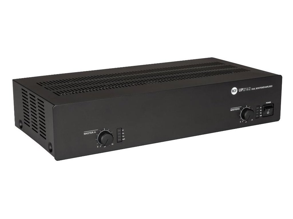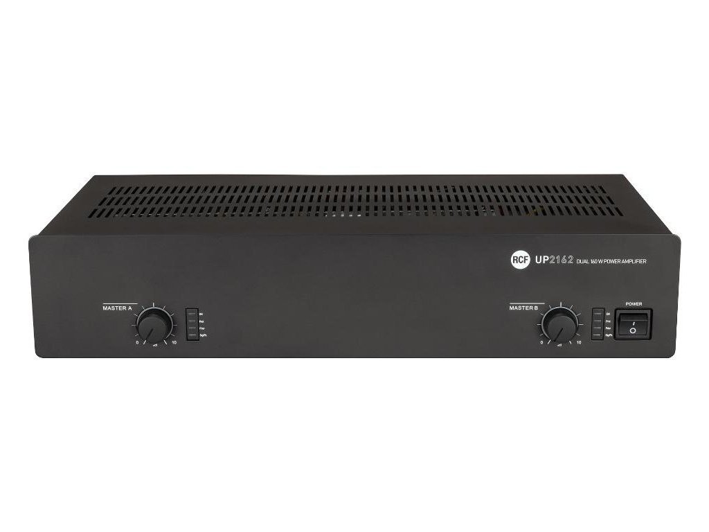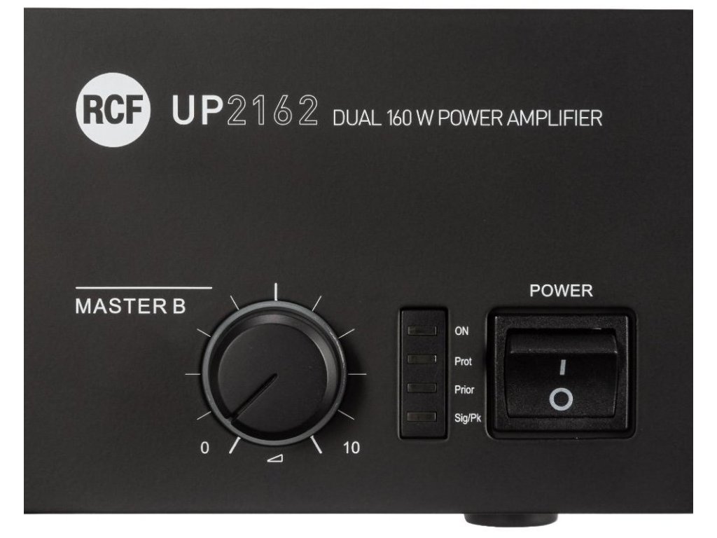UP 2162 to urządzenie z 2 oddzielnymi i niezależnymi wzmacniaczami o mocy 160 W, z których każdy ma 2 wejścia audio, z których jedno ma funkcję priorytetu za pomocą zestyku zwiernego. Oba wejścia audio są na poziomie „line”: dla wstępnie wzmocnionych sygnałów lub źródeł muzyki (np. odtwarzacze CD, tunery itp.) Wyjście wzmacniacza jest dostępne albo dla głośników o niskiej impedancji (min. 4 Ω), albo dla linii o stałym napięciu 100 - 70 V (dla głośników z transformatorami 100 - 70 V). Wzmacniacz jest klasy D z zasilaczem impulsowym; całkowita masa jest ekstremalnie zmniejszona, a ponadto oferuje szeroką jakość pasma dźwiękowego.