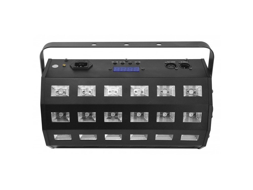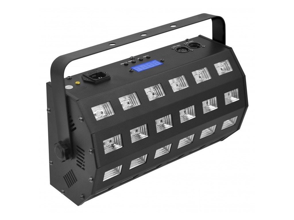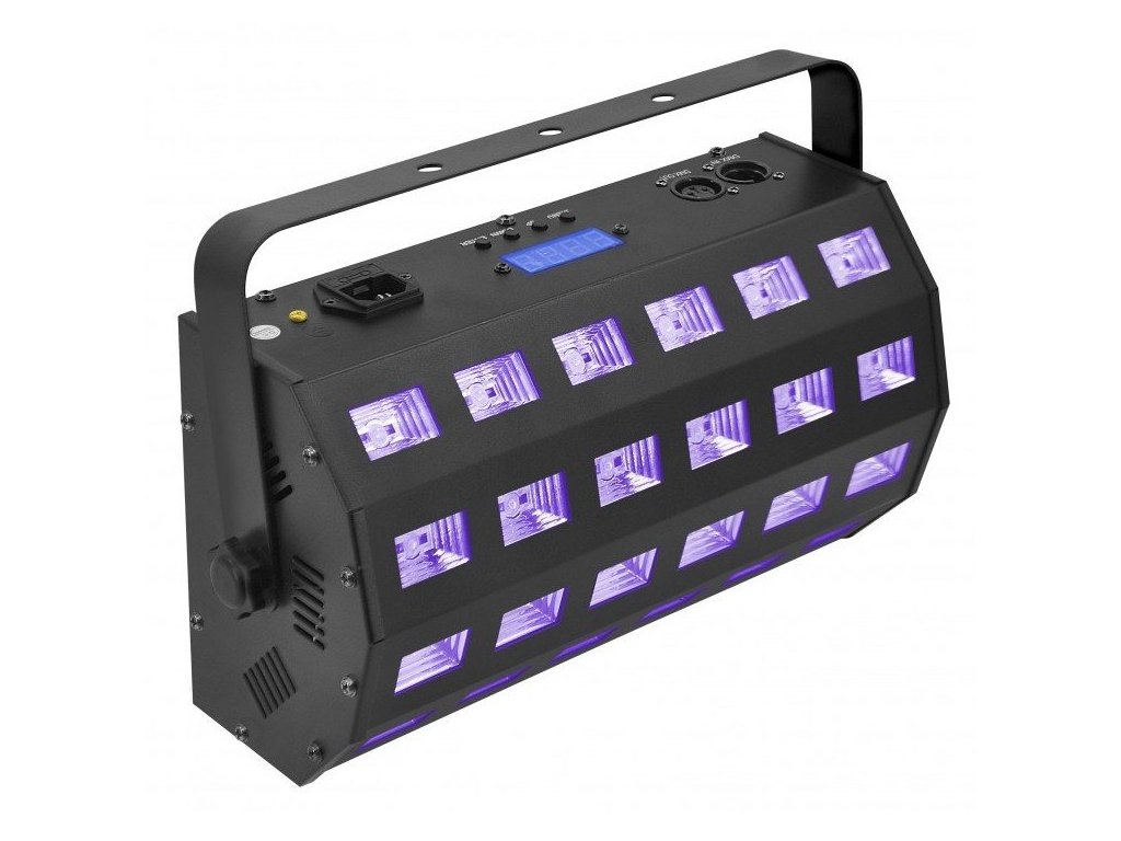 Specjalistyczny reflektor UV z funkcją stroboskopu, zawierający 24 diody LED o mocy 3 W, pracujące ze światłem ultrafioletowym i białym. Wyposażony we wbudowane makra i możliwość sterowania sekcjami diod, zmienną częstotliwość stroboskopu i 4 różne funkcje ściemniacza UV.