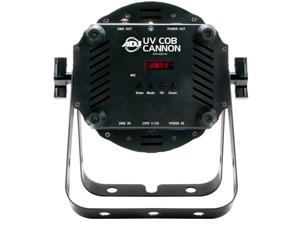 UV COB Canon firmy ADJ wyświetla duży ultrafioletowy efekt wash tworzony przez wysokowydajne, zaawansowane diody COB (Chip On Board) UV LED. Technologia COB LED umożliwia umieszczenie wydajnego urządzenia LED w małej przestrzeni.