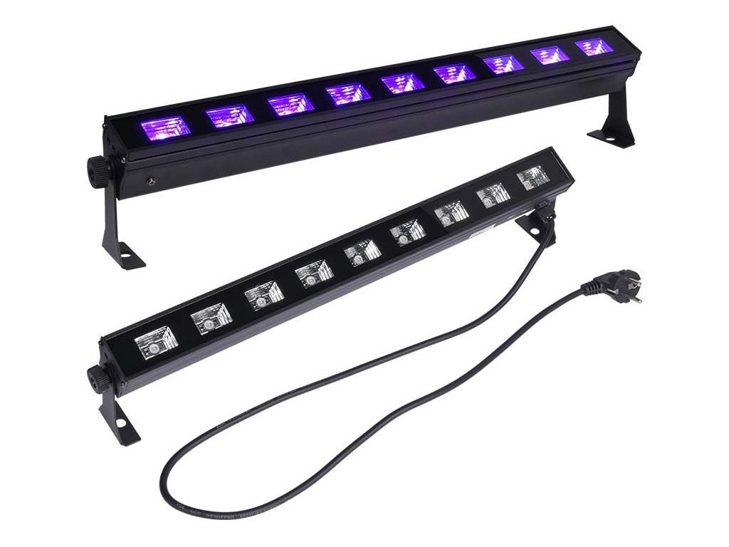 Ten bar UV oferuje doskonały stosunek ceny do jakości, jest wykonany z wytrzymałej aluminiowej obudowy w eleganckim czarnym kolorze, a jego pobór mocy wynosi zaledwie 27W. Emitowana długość fali 395-405nm jest optymalna do uzyskania pożądanych efektów wizualnych. Jest przeznaczony do użytku w pomieszczeniach, co czyni go idealnym do stałych instalacji i tymczasowych wydarzeń.