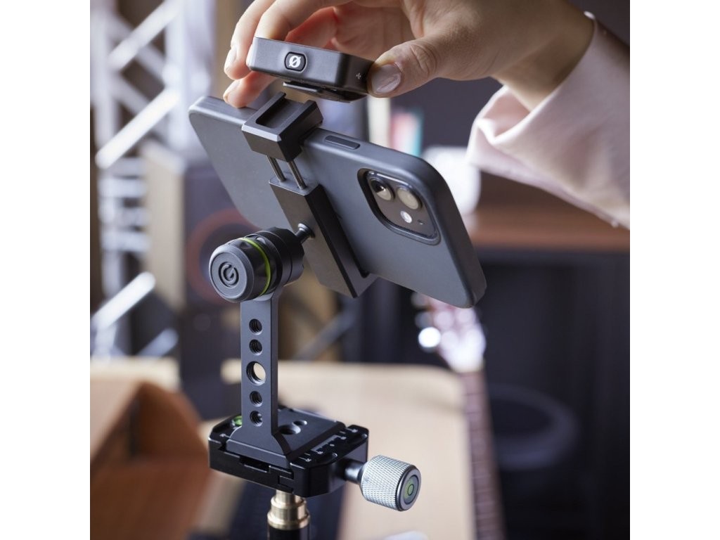 Stojak stołowy na smartfona Gravity to uniwersalny uchwyt, który umożliwia umieszczenie smartfona niemal wszędzie: Solidna aluminiowa konstrukcja może swobodnie stać na stole, można ją przymocować do różnych statywów za pomocą gwintów o różnych rozmiarach, a także można ją przymocować do płytek aparatów Arca-Swiss i w ten sposób zamontować smartfona na szybkozłączce w ciągu kilku sekund.
